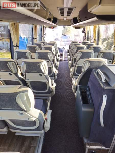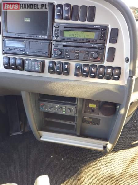 : video, WC, lodówka, kabina sypialna, fotele odchylane, oświetlenie indywidualne, nawiewy dyszowe, ABS, ASR, tempomat, retarder, CD, podnóżki, stoliczki, mikrofon, klimatyzacja, radio, sejf, regulacja wysokości nadwozia, podwójne szyby boczne, wspomaganie kierownicy, aluminiowe felgi, fotele odchylane i rozsuwane, DVD, ogrzewanie stacjonarne, ESP