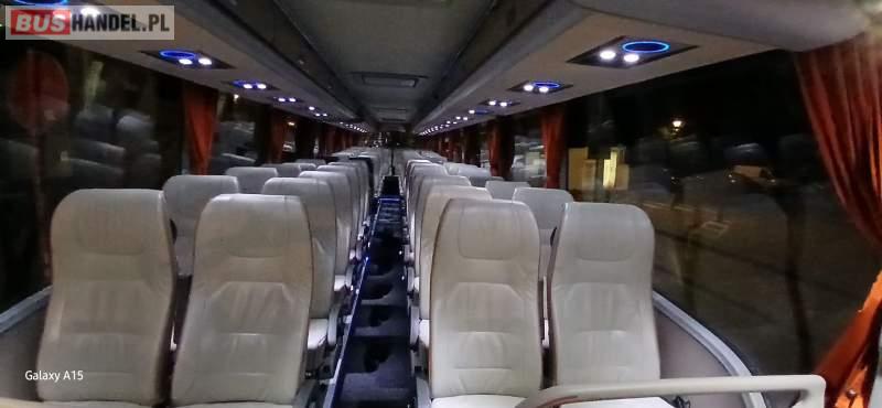 : klimatyzacja, video, WC, lodówka, caffebar, kabina sypialna, oświetlenie indywidualne, nawiewy dyszowe, fotele odchylane, podnóżki, stoliczki, siateczki, ABS, ASR, tempomat, retarder, nawigacja, CD, mikrofon, radio, kuchenka mikrofalowa, regulacja wysokości nadwozia, centralny zamek, podwójne szyby boczne, wspomaganie kierownicy, elektryczne lusterka, ogrzewanie stacjonarne, DVD, ESP