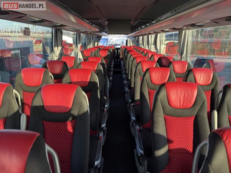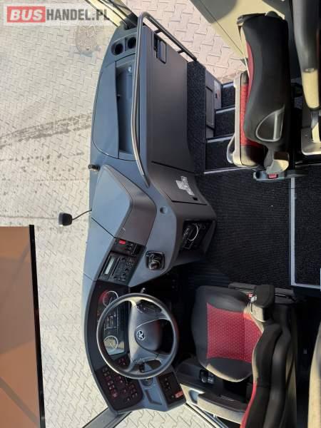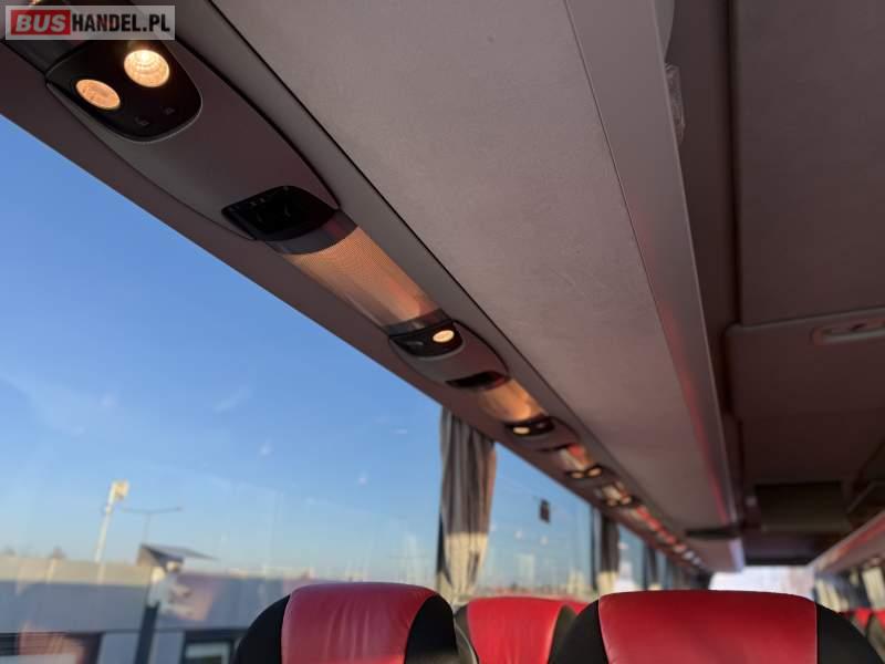 : video, WC, lodówka, caffebar, oświetlenie indywidualne, siateczki, ABS, ASR, tempomat, retarder, telefon, nawigacja, CD, podnóżki, stoliczki, mikrofon, klimatyzacja, radio, sejf, regulacja wysokości nadwozia, centralny zamek, podwójne szyby boczne, wspomaganie kierownicy, elektryczne lusterka, fotele odchylane i rozsuwane, DVD, ogrzewanie stacjonarne, hak holowniczy, ESP