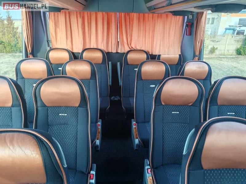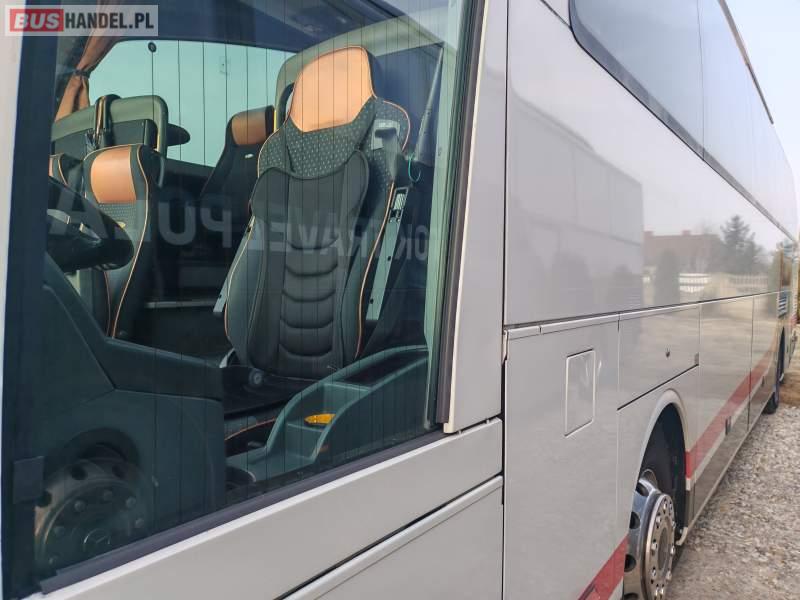 : WC, lodówka, oświetlenie indywidualne, nawiewy dyszowe, siateczki, ABS, tempomat, retarder, nawigacja, CD, podnóżki, stoliczki, mikrofon, klimatyzacja, radio, sejf, regulacja wysokości nadwozia, centralny zamek, podwójne szyby boczne, wspomaganie kierownicy, elektryczne lusterka, aluminiowe felgi, fotele odchylane i rozsuwane, DVD, ESP