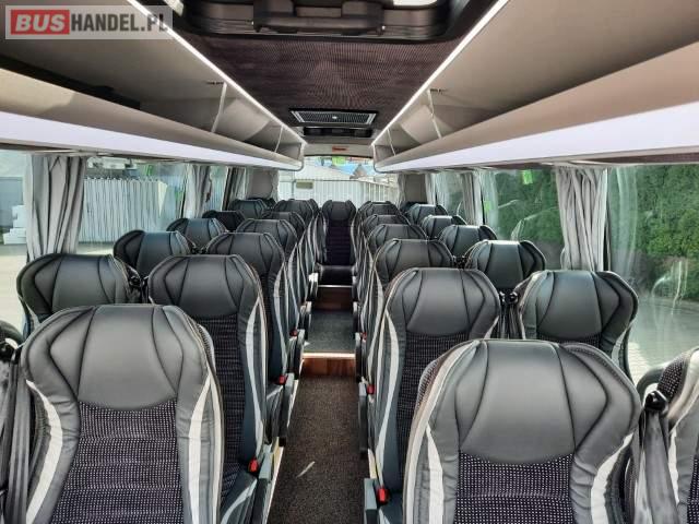: video, oświetlenie indywidualne, nawiewy dyszowe, siateczki, ABS, ASR, tempomat, retarder, mikrofon, radio, regulacja wysokości nadwozia, centralny zamek, podwójne szyby boczne, fotele odchylane i rozsuwane, DVD, ogrzewanie stacjonarne, hak holowniczy