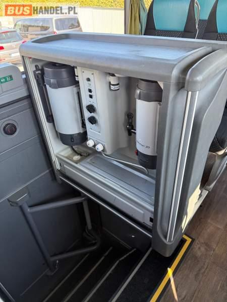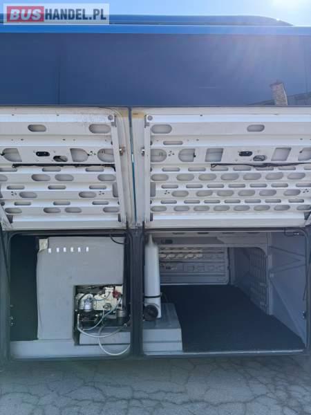 : WC, lodówka, caffebar, kabina sypialna, oświetlenie indywidualne, nawiewy dyszowe, siateczki, ABS, ASR, tempomat, retarder, podnóżki, stoliczki, mikrofon, klimatyzacja, radio, sejf, regulacja wysokości nadwozia, centralny zamek, podwójne szyby boczne, wspomaganie kierownicy, elektryczne lusterka, fotele odchylane i rozsuwane, DVD, ogrzewanie stacjonarne, ESP