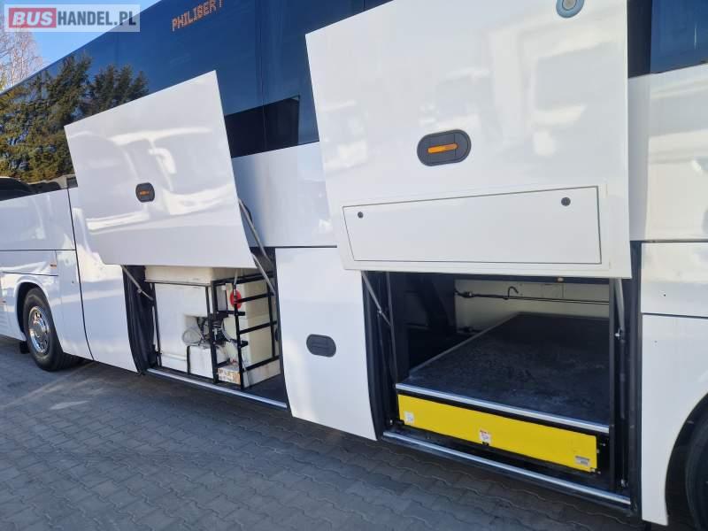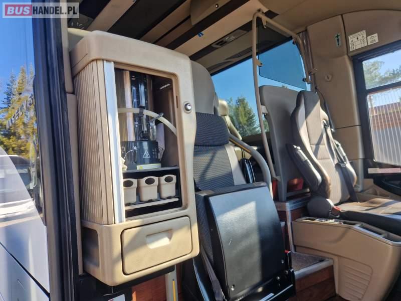 : video, WC, lodówka, caffebar, kabina sypialna, oświetlenie indywidualne, siateczki, ABS, ASR, tempomat, retarder, telefon, CD, podnóżki, stoliczki, mikrofon, klimatyzacja, radio, rampa dla inwalidów, regulacja wysokości nadwozia, centralny zamek, podwójne szyby boczne, wspomaganie kierownicy, elektryczne lusterka, fotele odchylane i rozsuwane, DVD, ogrzewanie stacjonarne, ESP