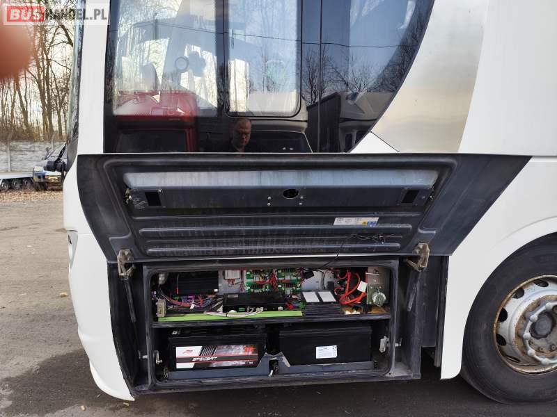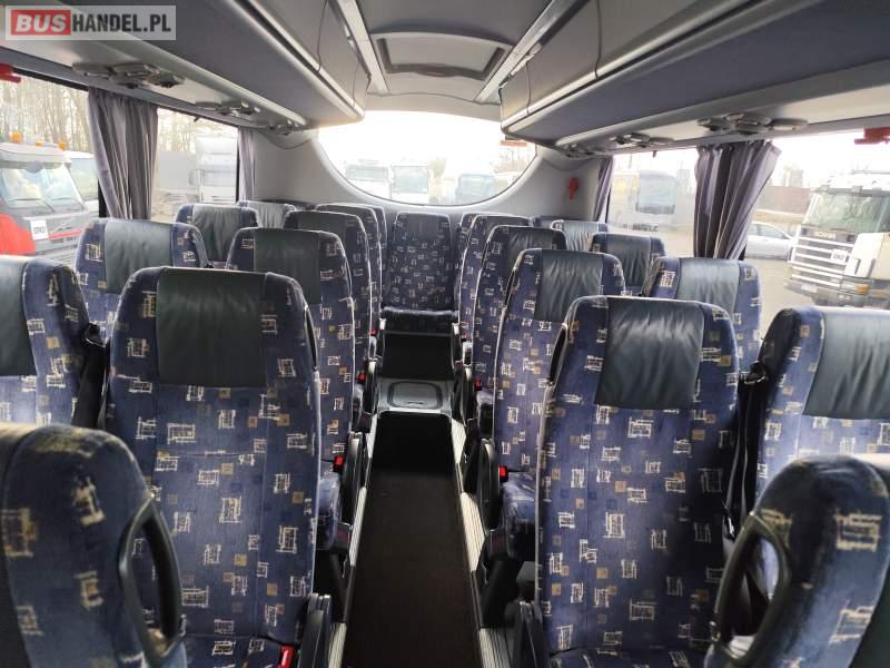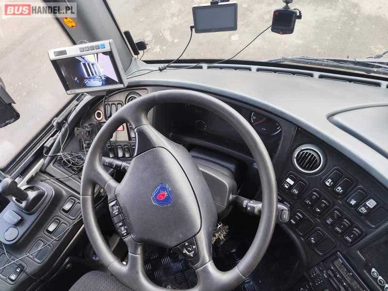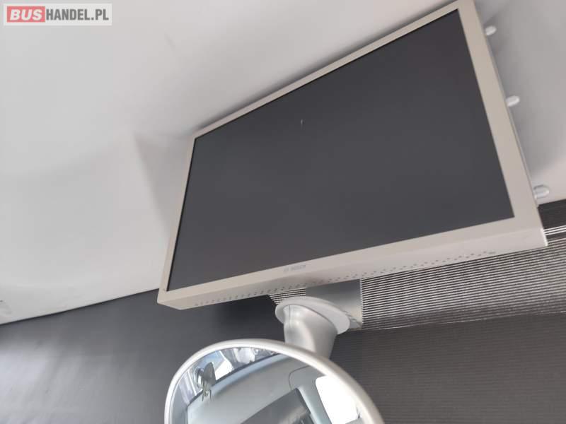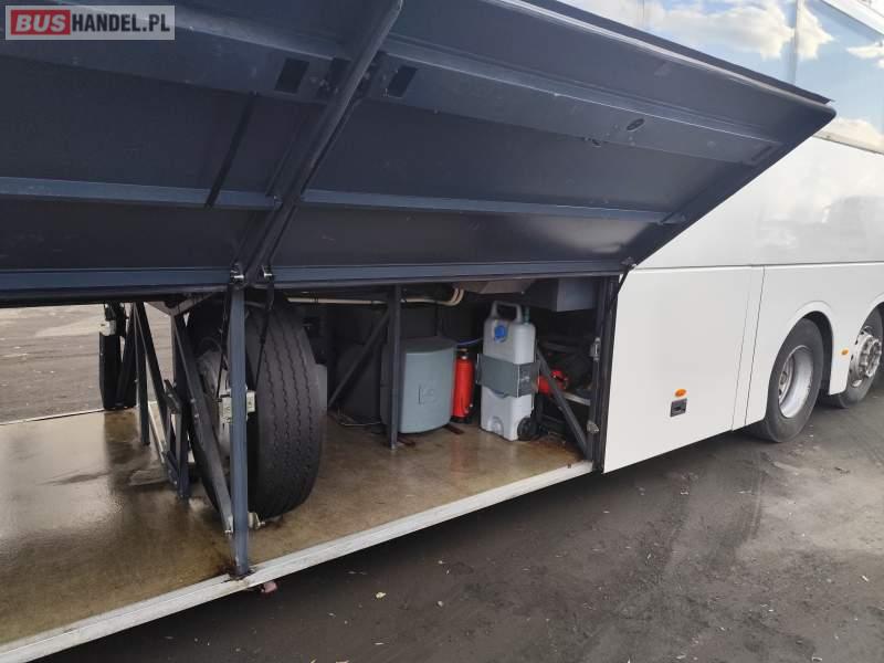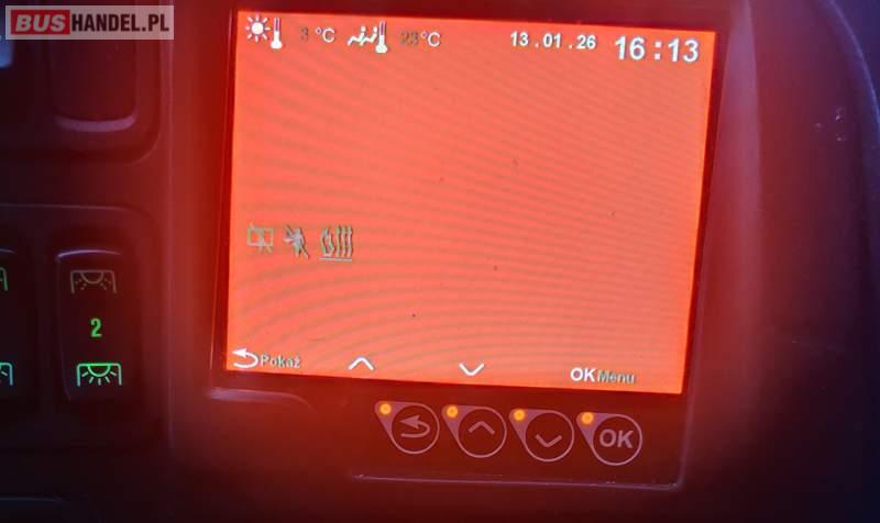 : video, WC, lodówka, fotele odchylane, oświetlenie indywidualne, nawiewy dyszowe, siateczki, ABS, ASR, tempomat, retarder, CD, podnóżki, stoliczki, mikrofon, klimatyzacja, radio, rampa dla inwalidów, regulacja wysokości nadwozia, centralny zamek, podwójne szyby boczne, wspomaganie kierownicy, elektryczne lusterka, DVD, ogrzewanie stacjonarne, ESP
