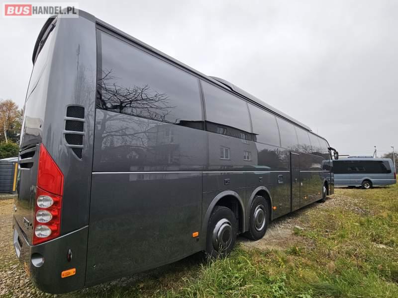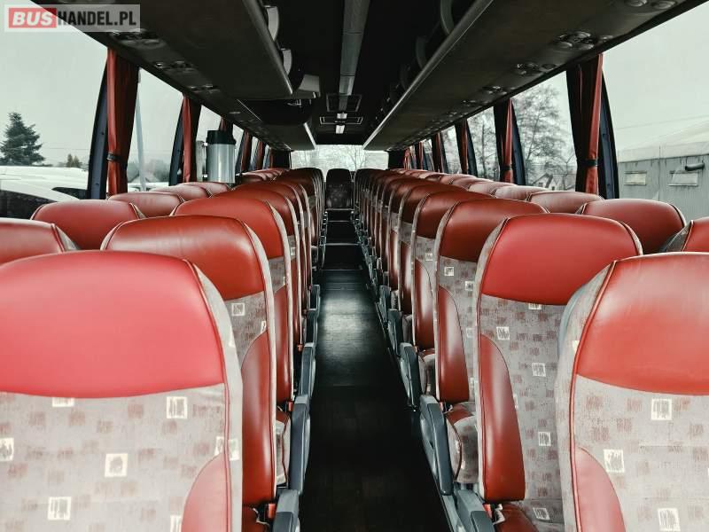 : video, WC, lodówka, kabina sypialna, fotele odchylane, oświetlenie indywidualne, nawiewy dyszowe, siateczki, ABS, ASR, tempomat, CD, stoliczki, mikrofon, klimatyzacja, radio, regulacja wysokości nadwozia, podwójne szyby boczne, wspomaganie kierownicy, elektryczne lusterka, DVD, ogrzewanie stacjonarne, ESP