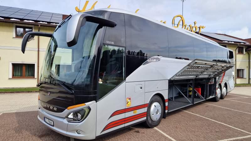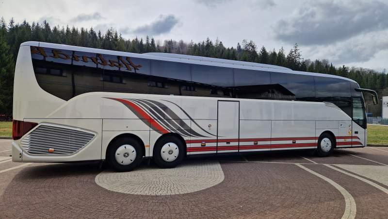 *** Na sprzedaż bardzo zadbany i mocno doinwestowany autokar Setra 517 HD * Rok produkcji: 2015 * Ilość miejsc: 56+1+1 (rejestracja na 60, jedną dwójkę w oryginalnej tapicerce dodaję do autobusu) * Oryginalny przebieg: 639 000 km * Automatyczna 8biegowa skrzynia biegów PowerShift Autobus bardzo bogato wyposażony: - Reflektory LED - Aktywny tempomat - Trzy monitory (możliwość wyświetlania filmów z telefonu np. Netflix, YT czy komputera) - 2 lodówki - Duża przetwornica 220V - Gniazdka USB do ładowania dla pasażerów - Dodatkowe akumulatory rozruchowe - Kamera cofania - Kamera na środkowe wejście - WC - Oryginalne ciemne szyby Autobus absolutnie niewymagający nakładów finansowych - gotowy do dalszej eksploatacji!!! * Przy przebiegu 585 000 km wymienione kompletne sprzęgło * W listopadzie 2025 (przebieg 625 000km) duży serwis w EvoBus: - nowa turbosprężarka wraz z zaworem regulacji ciśnienia - wymieniona pompa wysokiego ciśnienia wraz z układem paliwowym - nowy komplet wtrysków Po więcej informacji zapraszam do kontaktu telefonicznego Sprzedający: