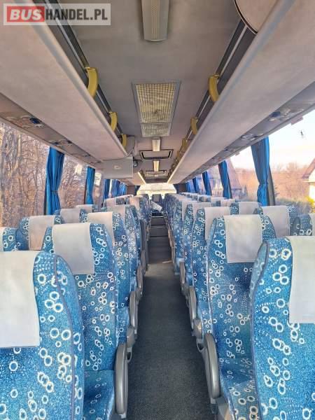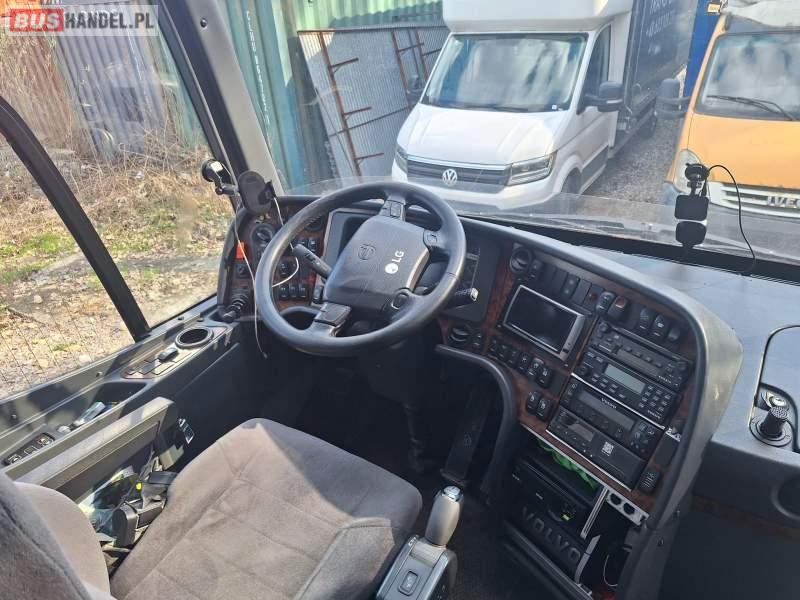 : video, WC, lodówka, caffebar, kabina sypialna, oświetlenie indywidualne, nawiewy dyszowe, siateczki, ABS, tempomat, retarder, nawigacja, CD, podnóżki, stoliczki, mikrofon, klimatyzacja, radio, sejf, regulacja wysokości nadwozia, podwójne szyby boczne, wspomaganie kierownicy, elektryczne lusterka, fotele odchylane i rozsuwane, DVD, ogrzewanie stacjonarne, ESP