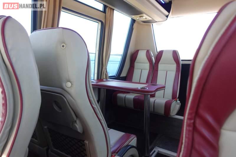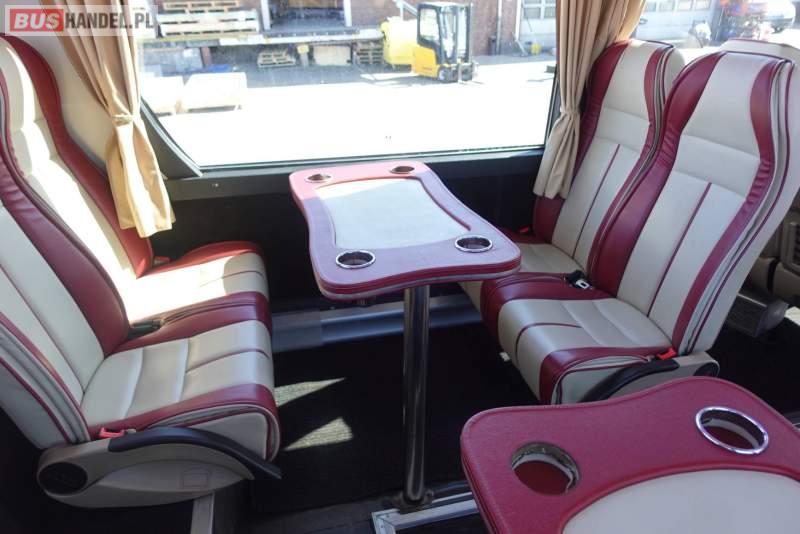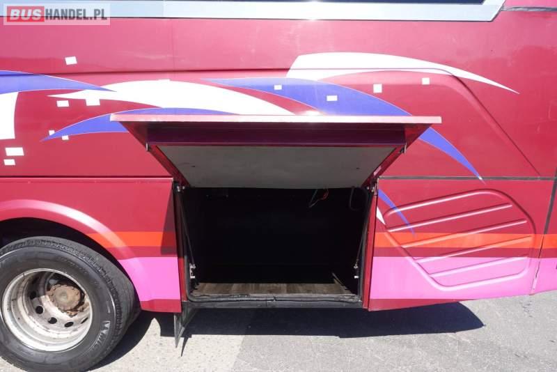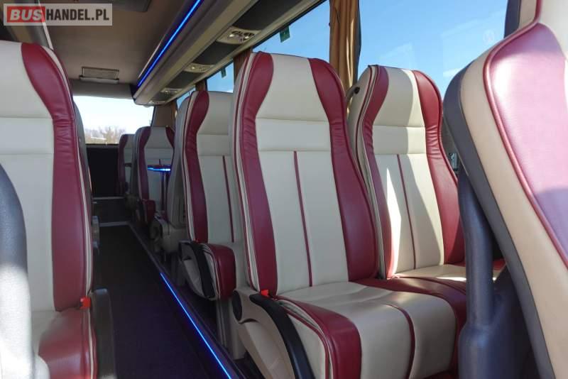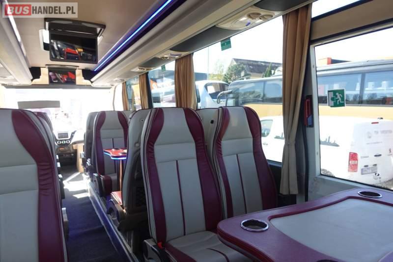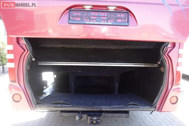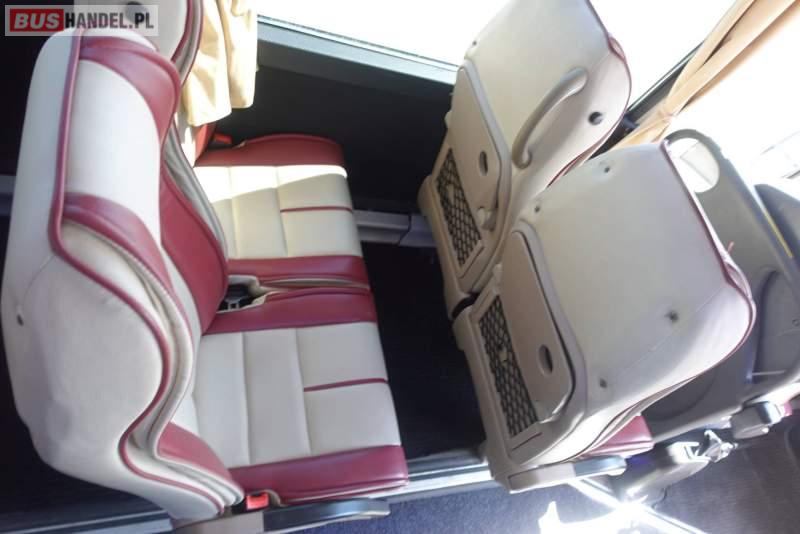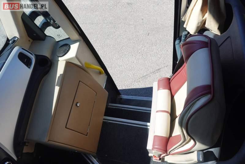 : video, lodówka, fotele odchylane, oświetlenie indywidualne, nawiewy dyszowe, siateczki, ABS, ASR, tempomat, retarder, CD, stoliczki, mikrofon, klimatyzacja, radio, regulacja wysokości nadwozia, podwójne szyby boczne, wspomaganie kierownicy, elektryczne lusterka, fotele odchylane i rozsuwane, DVD, ogrzewanie stacjonarne, ESP