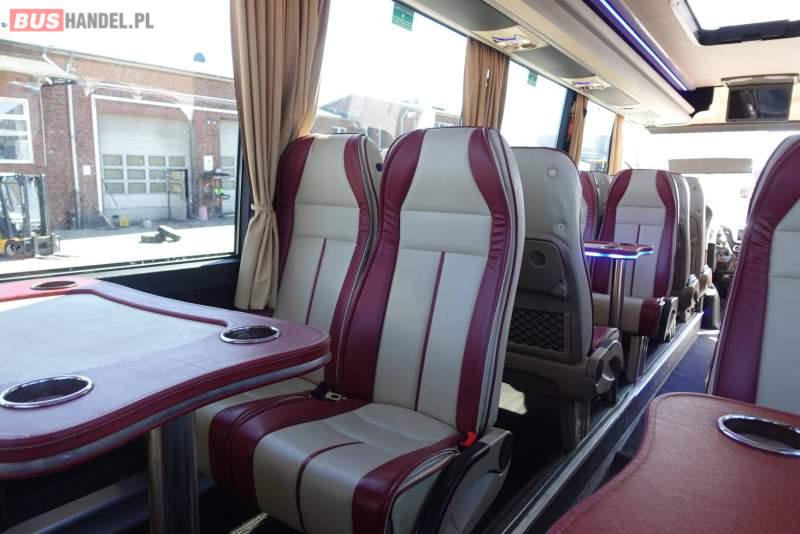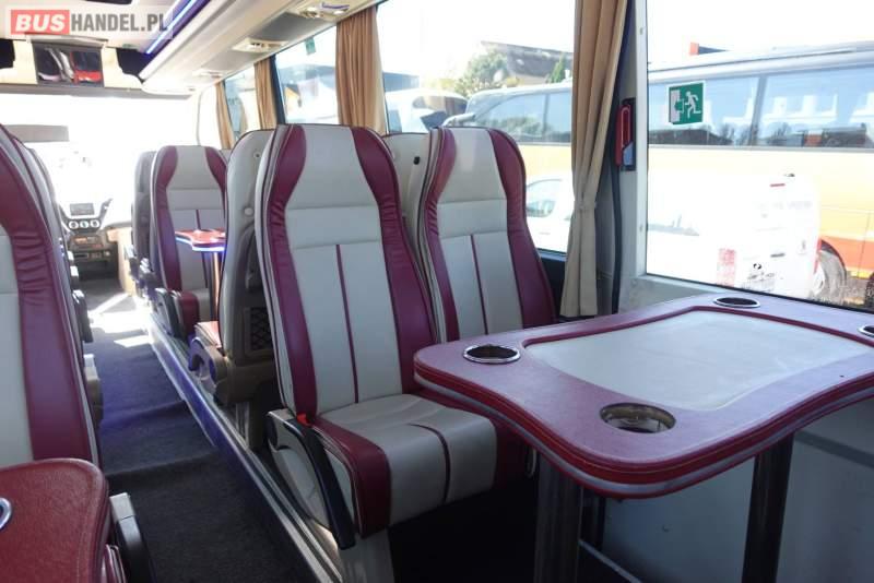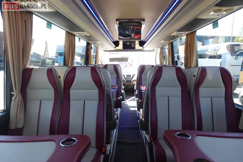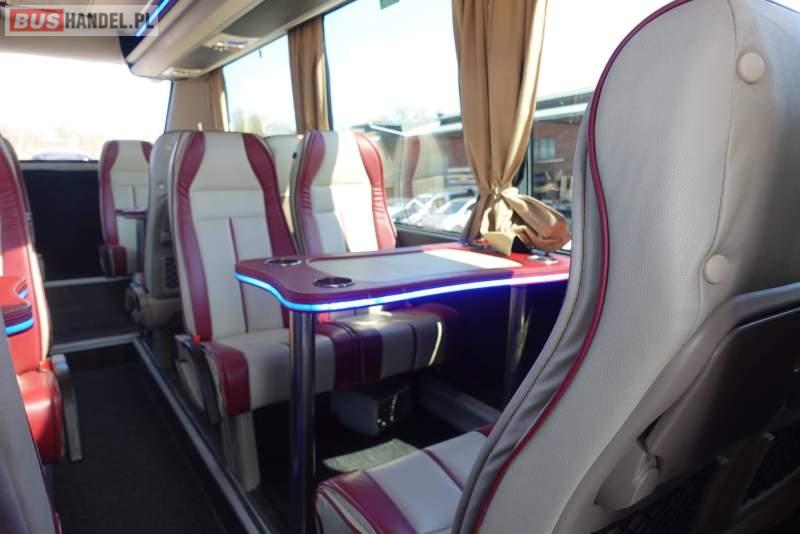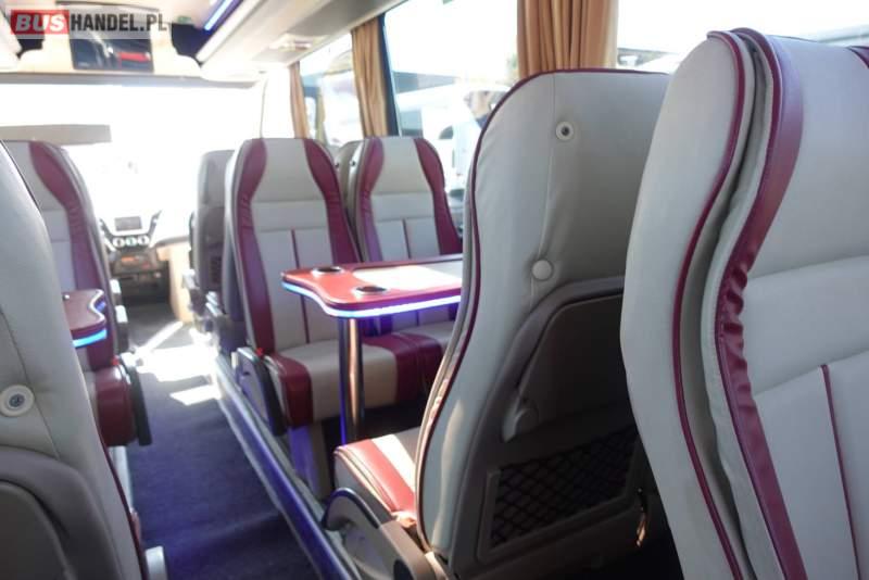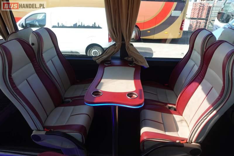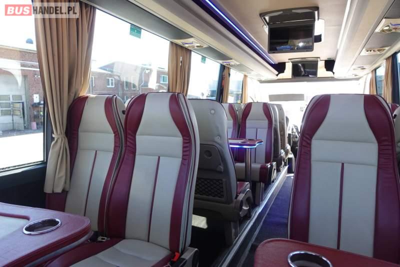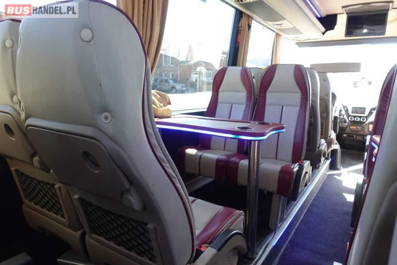 : video, lodówka, fotele odchylane, oświetlenie indywidualne, nawiewy dyszowe, siateczki, ABS, ASR, tempomat, retarder, CD, stoliczki, mikrofon, klimatyzacja, radio, regulacja wysokości nadwozia, podwójne szyby boczne, wspomaganie kierownicy, elektryczne lusterka, fotele odchylane i rozsuwane, DVD, ogrzewanie stacjonarne, ESP