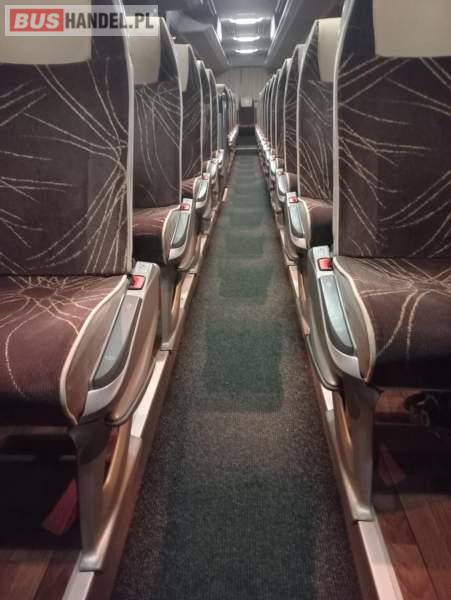: video, WC, lodówka, caffebar, kabina sypialna, fotele odchylane, oświetlenie indywidualne, nawiewy dyszowe, siateczki, ABS, ASR, tempomat, retarder, nawigacja, CD, podnóżki, stoliczki, mikrofon, klimatyzacja, radio, wyświetlacz matrix, sejf, regulacja wysokości nadwozia, centralny zamek, podwójne szyby boczne, wspomaganie kierownicy, elektryczne lusterka, fotele odchylane i rozsuwane, DVD, ogrzewanie stacjonarne, ESP