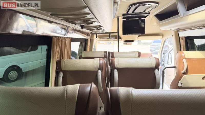 : fotele odchylane, oświetlenie indywidualne, nawiewy dyszowe, siateczki, ABS, ASR, tempomat, retarder, podnóżki, stoliczki, mikrofon, klimatyzacja, radio, regulacja wysokości nadwozia, centralny zamek, podwójne szyby boczne, wspomaganie kierownicy, elektryczne lusterka, DVD, ogrzewanie stacjonarne