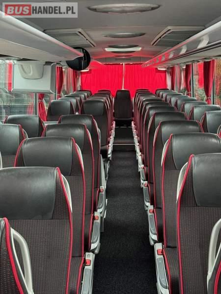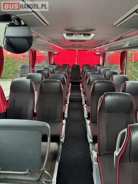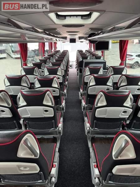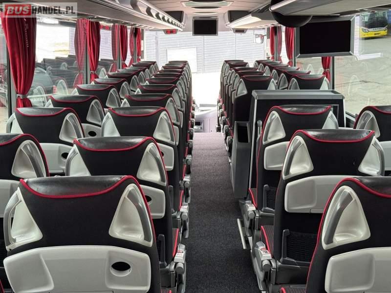 : WC, lodówka, kabina sypialna, fotele odchylane, oświetlenie indywidualne, nawiewy dyszowe, siateczki, ABS, ASR, tempomat, retarder, CD, podnóżki, stoliczki, mikrofon, klimatyzacja, radio, regulacja wysokości nadwozia, centralny zamek, podwójne szyby boczne, wspomaganie kierownicy, elektryczne lusterka, aluminiowe felgi, DVD, ogrzewanie stacjonarne, ESP