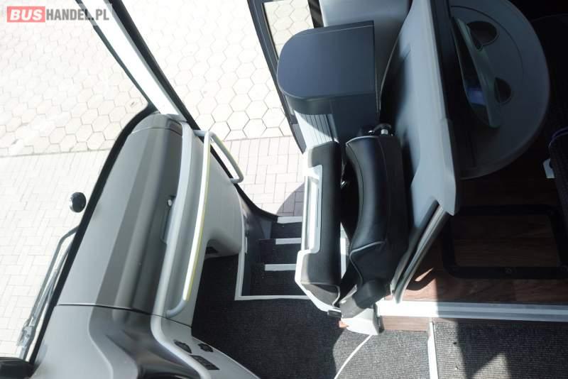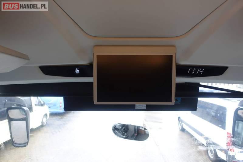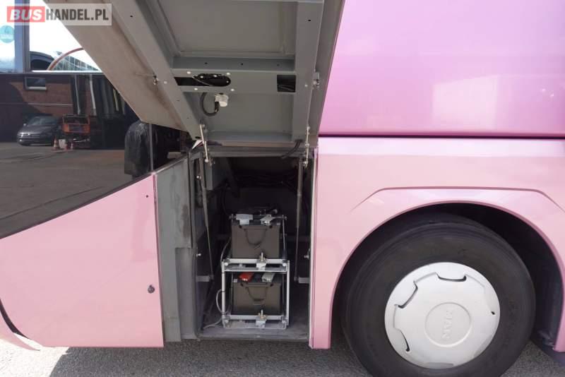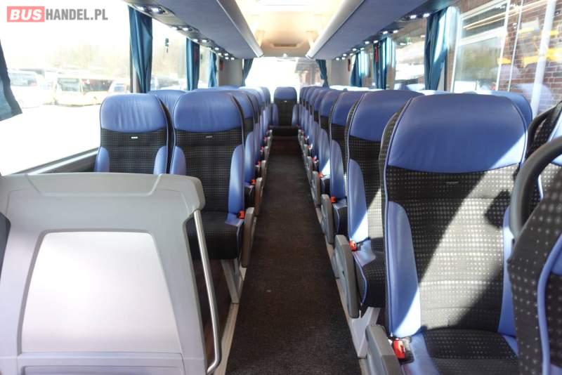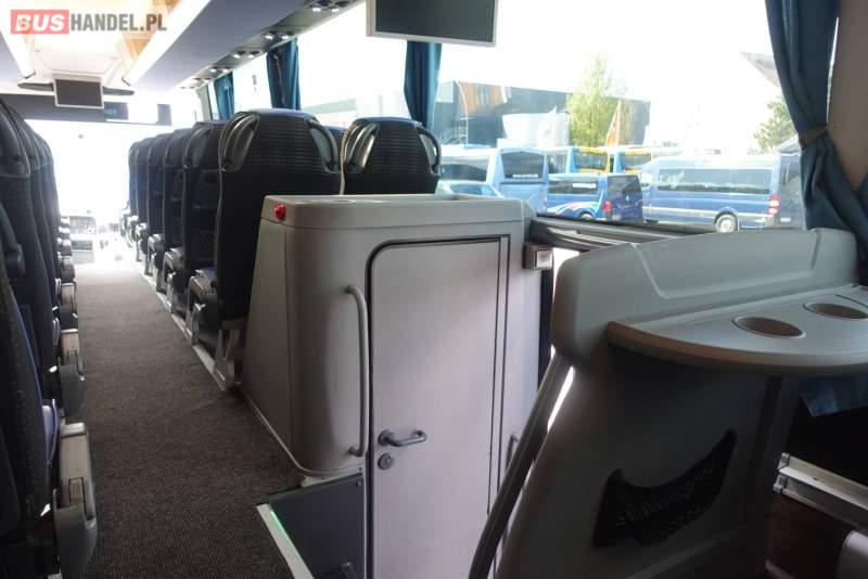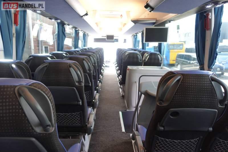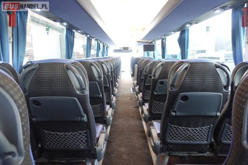 : video, WC, lodówka, kabina sypialna, fotele odchylane, oświetlenie indywidualne, nawiewy dyszowe, siateczki, ABS, ASR, tempomat, retarder, nawigacja, CD, podnóżki, stoliczki, mikrofon, klimatyzacja, radio, wyświetlacz matrix, regulacja wysokości nadwozia, centralny zamek, podwójne szyby boczne, wspomaganie kierownicy, elektryczne lusterka, fotele odchylane i rozsuwane, DVD, ogrzewanie stacjonarne, ESP