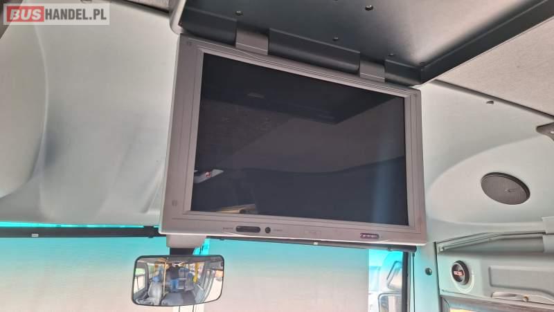 : video, oświetlenie indywidualne, nawiewy dyszowe, ABS, ASR, tempomat, retarder, CD, klimatyzacja, radio, podwójne szyby boczne, wspomaganie kierownicy, elektryczne lusterka, fotele odchylane i rozsuwane, DVD, ogrzewanie stacjonarne, hak holowniczy