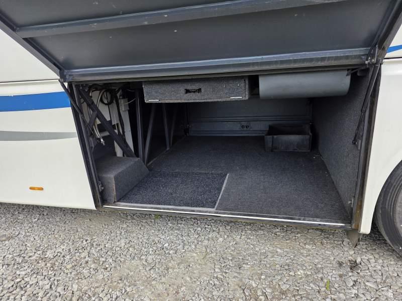 : video, WC, lodówka, fotele odchylane, oświetlenie indywidualne, nawiewy dyszowe, siateczki, ABS, ASR, tempomat, retarder, nawigacja, CD, podnóżki, stoliczki, mikrofon, klimatyzacja, radio, regulacja wysokości nadwozia, centralny zamek, podwójne szyby boczne, wspomaganie kierownicy, elektryczne lusterka, fotele odchylane i rozsuwane, ogrzewanie stacjonarne, ESP