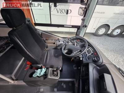 : fotele odchylane, oświetlenie indywidualne, nawiewy dyszowe, ABS, ASR, tempomat, retarder, CD, podnóżki, mikrofon, klimatyzacja, radio, regulacja wysokości nadwozia, podwójne szyby boczne, wspomaganie kierownicy, elektryczne lusterka, ogrzewanie stacjonarne, ESP