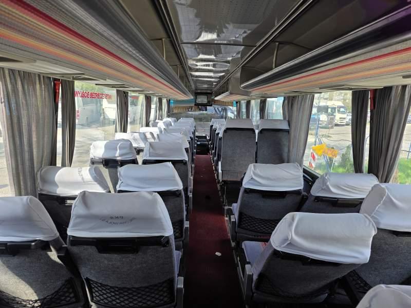 : klimatyzacja, video, lodówka, oświetlenie indywidualne, nawiewy dyszowe, podnóżki, stoliczki, siateczki, ABS, ASR, retarder, mikrofon, radio, fotele odchylane i rozsuwane, regulacja wysokości nadwozia, podwójne szyby boczne, wspomaganie kierownicy, ogrzewanie stacjonarne