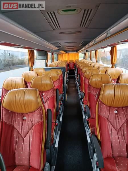 : WC, lodówka, fotele odchylane, oświetlenie indywidualne, nawiewy dyszowe, siateczki, ABS, ASR, tempomat, retarder, stoliczki, mikrofon, klimatyzacja, radio, centralny zamek, podwójne szyby boczne, wspomaganie kierownicy, elektryczne lusterka, ogrzewanie stacjonarne, ESP