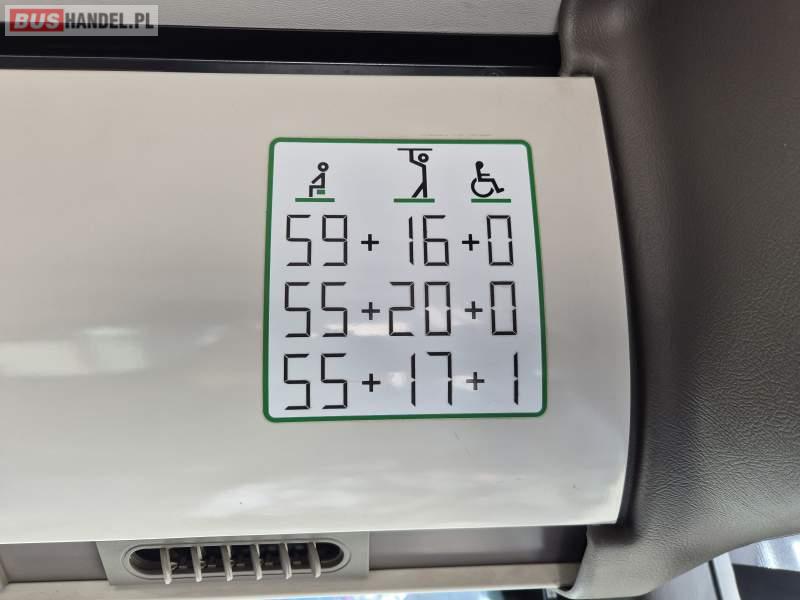 : fotele odchylane, oświetlenie indywidualne, nawiewy dyszowe, siateczki, ABS, tempomat, retarder, mikrofon, klimatyzacja, radio, rampa dla inwalidów, regulacja wysokości nadwozia, centralny zamek, podwójne szyby boczne, wspomaganie kierownicy, elektryczne lusterka, ogrzewanie stacjonarne