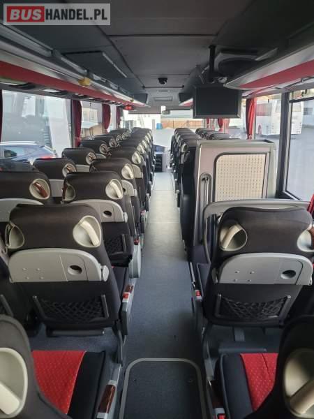 : WC, lodówka, caffebar, oświetlenie indywidualne, nawiewy dyszowe, siateczki, ABS, ASR, tempomat, retarder, CD, podnóżki, stoliczki, mikrofon, klimatyzacja, radio, podwójne szyby boczne, wspomaganie kierownicy, elektryczne lusterka, fotele odchylane i rozsuwane, DVD, ogrzewanie stacjonarne
