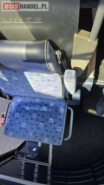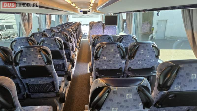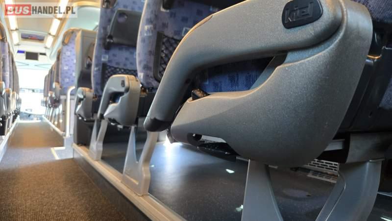 : WC, lodówka, kabina sypialna, fotele odchylane, oświetlenie indywidualne, nawiewy dyszowe, siateczki, ABS, ASR, tempomat, retarder, podnóżki, stoliczki, mikrofon, klimatyzacja, radio, regulacja wysokości nadwozia, centralny zamek, podwójne szyby boczne, wspomaganie kierownicy, elektryczne lusterka, fotele odchylane i rozsuwane, ogrzewanie stacjonarne, ESP