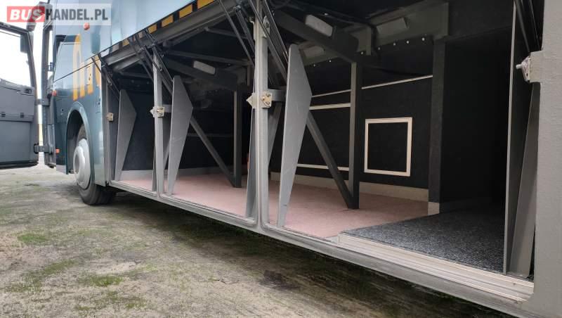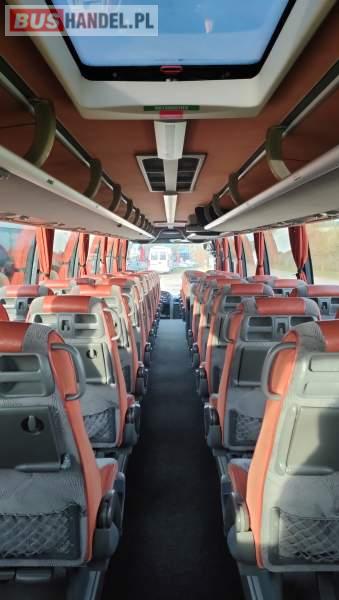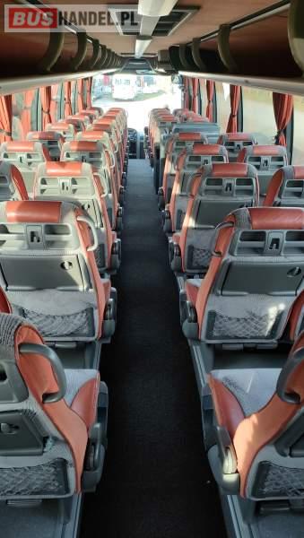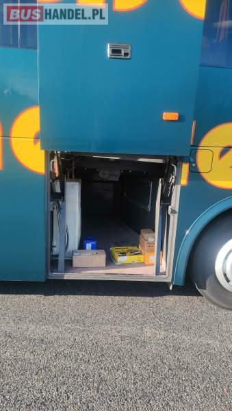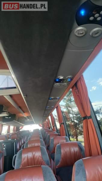 : video, WC, lodówka, caffebar, kabina sypialna, fotele odchylane, oświetlenie indywidualne, nawiewy dyszowe, siateczki, ABS, ASR, tempomat, retarder, nawigacja, CD, podnóżki, stoliczki, mikrofon, klimatyzacja, radio, sejf, regulacja wysokości nadwozia, centralny zamek, podwójne szyby boczne, wspomaganie kierownicy, elektryczne lusterka, fotele odchylane i rozsuwane, DVD, ogrzewanie stacjonarne, hak holowniczy, ESP