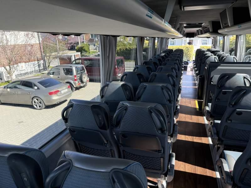 : WC, kabina sypialna, fotele odchylane, nawiewy dyszowe, ABS, ASR, retarder, CD, klimatyzacja, radio, regulacja wysokości nadwozia, podwójne szyby boczne, elektryczne lusterka, fotele odchylane i rozsuwane, DVD, ogrzewanie stacjonarne