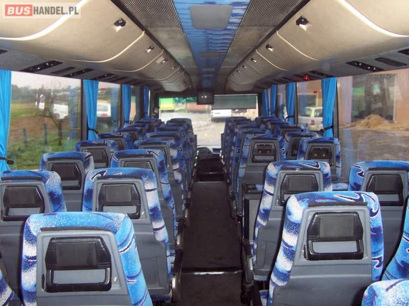 : video, lodówka, fotele odchylane, oświetlenie indywidualne, nawiewy dyszowe, ABS, ASR, retarder, CD, podnóżki, mikrofon, klimatyzacja, radio, regulacja wysokości nadwozia, centralny zamek, podwójne szyby boczne, wspomaganie kierownicy, elektryczne lusterka, DVD, ogrzewanie stacjonarne