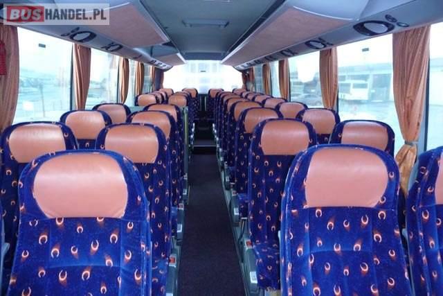 : WC, lodówka, caffebar, fotele odchylane, oświetlenie indywidualne, nawiewy dyszowe, siateczki, ABS, ASR, tempomat, retarder, nawigacja, CD, podnóżki, stoliczki, mikrofon, klimatyzacja, radio, centralny zamek, podwójne szyby boczne, wspomaganie kierownicy, DVD, ogrzewanie stacjonarne