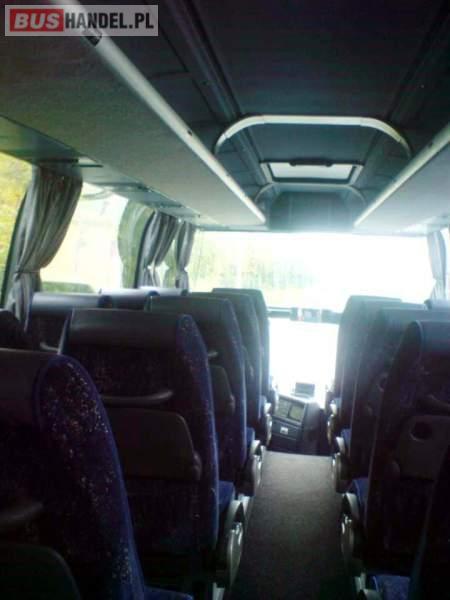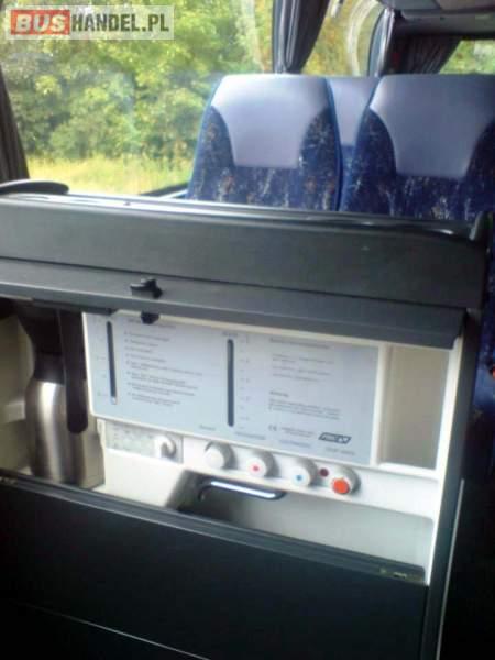: video, WC, lodówka, caffebar, kabina sypialna, oświetlenie indywidualne, nawiewy dyszowe, siateczki, ABS, ASR, tempomat, retarder, CD, podnóżki, stoliczki, mikrofon, klimatyzacja, radio, centralny zamek, podwójne szyby boczne, elektryczne lusterka, fotele odchylane i rozsuwane, DVD, ogrzewanie stacjonarne