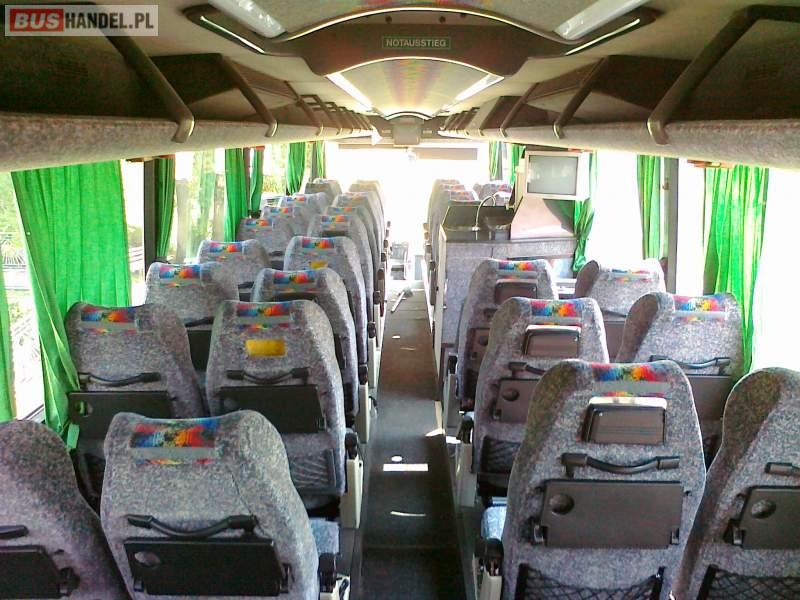 : WC, lodówka, caffebar, fotele odchylane, oświetlenie indywidualne, nawiewy dyszowe, siateczki, ABS, ASR, retarder, CD, stoliczki, mikrofon, klimatyzacja, radio, regulacja wysokości nadwozia, centralny zamek, podwójne szyby boczne, wspomaganie kierownicy, elektryczne lusterka, DVD, ogrzewanie stacjonarne