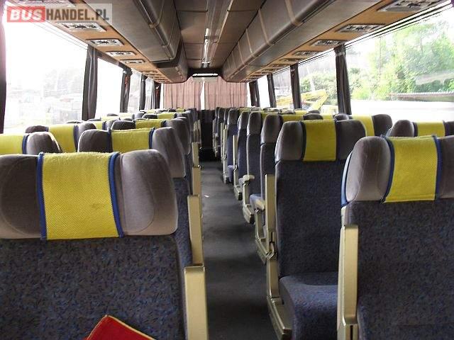 : video, WC, lodówka, caffebar, fotele odchylane, oświetlenie indywidualne, nawiewy dyszowe, siateczki, ABS, CD, stoliczki, mikrofon, klimatyzacja, radio, regulacja wysokości nadwozia, wspomaganie kierownicy, fotele odchylane i rozsuwane, DVD, ogrzewanie stacjonarne