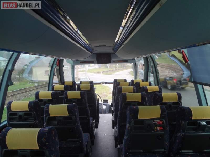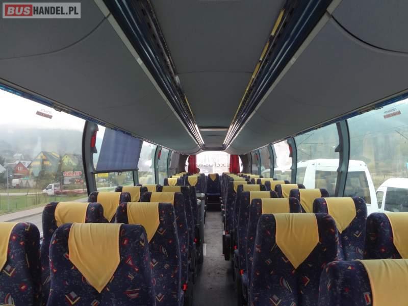 : video, WC, lodówka, caffebar, kabina sypialna, oświetlenie indywidualne, nawiewy dyszowe, siateczki, ABS, ASR, tempomat, retarder, nawigacja, CD, podnóżki, stoliczki, mikrofon, klimatyzacja, radio, regulacja wysokości nadwozia, podwójne szyby boczne, wspomaganie kierownicy, elektryczne lusterka, fotele odchylane i rozsuwane, DVD, ogrzewanie stacjonarne, hak holowniczy, ESP