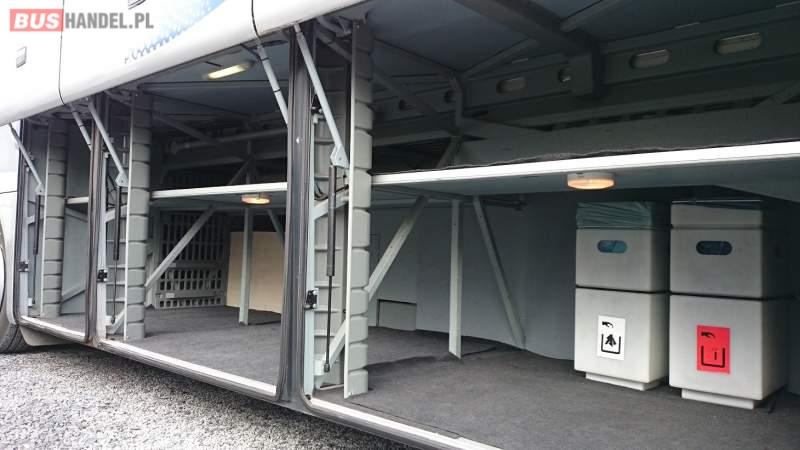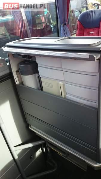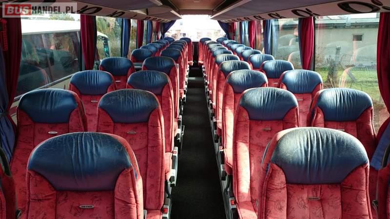 : WC, caffebar, oświetlenie indywidualne, nawiewy dyszowe, siateczki, ABS, ASR, tempomat, retarder, CD, podnóżki, stoliczki, mikrofon, klimatyzacja, radio, centralny zamek, podwójne szyby boczne, wspomaganie kierownicy, elektryczne lusterka, fotele odchylane i rozsuwane, DVD, ogrzewanie stacjonarne, ESP