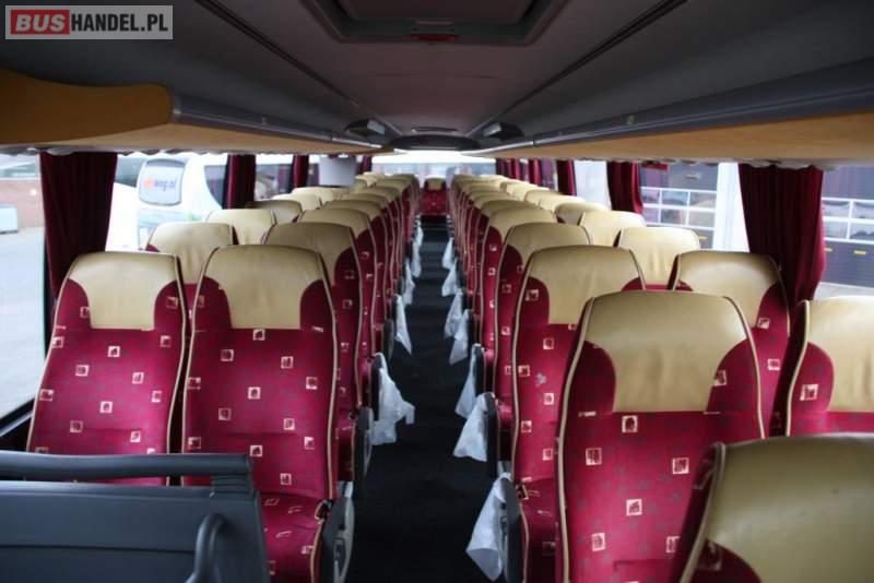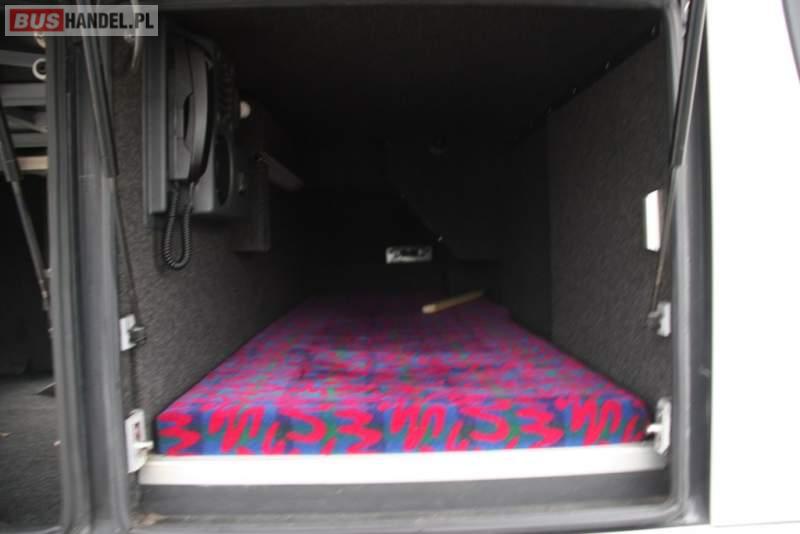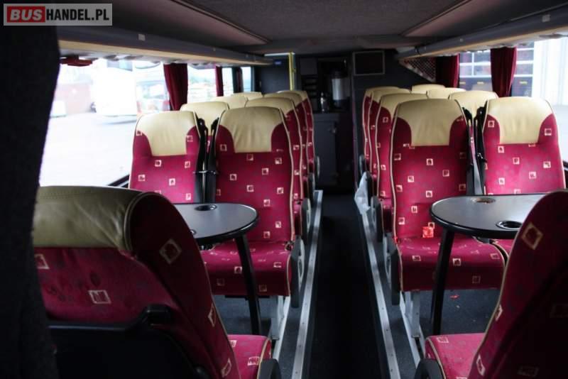 : video, WC, lodówka, caffebar, kabina sypialna, fotele odchylane, oświetlenie indywidualne, nawiewy dyszowe, ABS, ASR, tempomat, retarder, CD, podnóżki, stoliczki, mikrofon, klimatyzacja, radio, centralny zamek, podwójne szyby boczne, wspomaganie kierownicy, elektryczne lusterka, fotele odchylane i rozsuwane, DVD, ogrzewanie stacjonarne, hak holowniczy