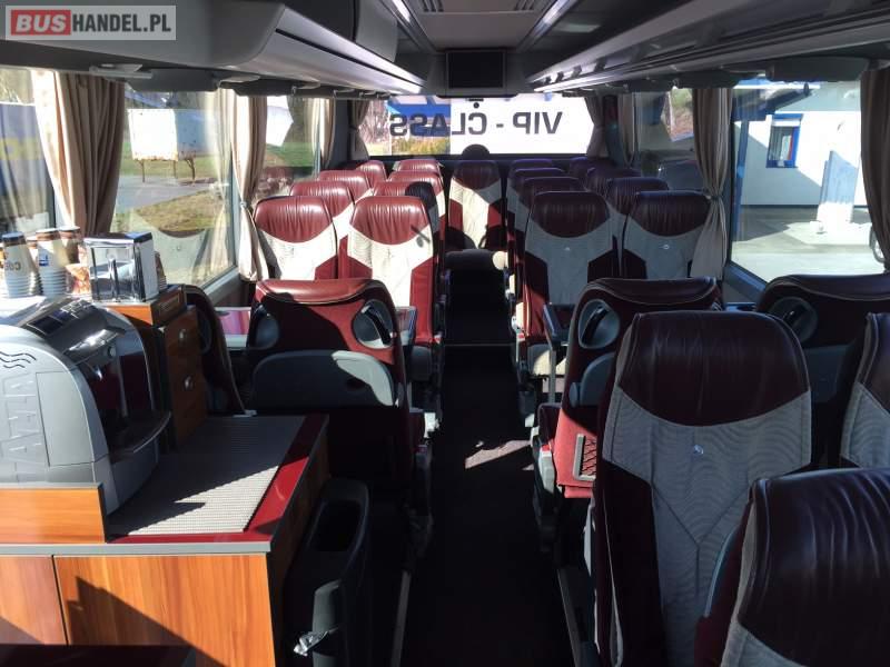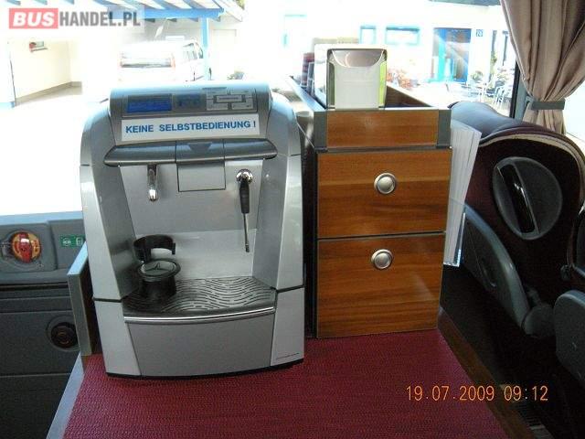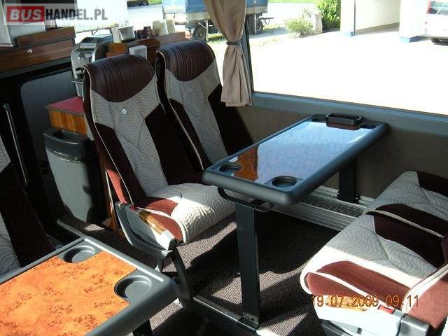 : WC, lodówka, caffebar, oświetlenie indywidualne, nawiewy dyszowe, siateczki, ABS, ASR, tempomat, retarder, nawigacja, CD, podnóżki, stoliczki, mikrofon, klimatyzacja, radio, centralny zamek, podwójne szyby boczne, wspomaganie kierownicy, elektryczne lusterka, aluminiowe felgi, fotele odchylane i rozsuwane, DVD, ogrzewanie stacjonarne, ESP