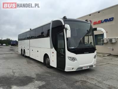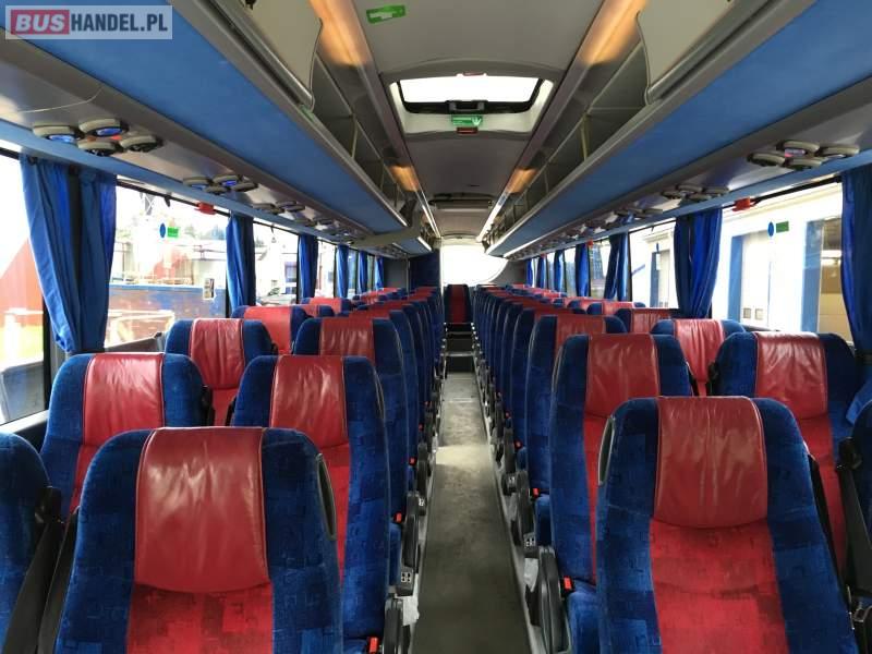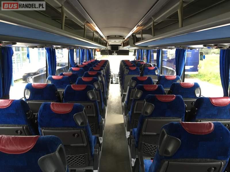 : video, WC, caffebar, oświetlenie indywidualne, nawiewy dyszowe, siateczki, ABS, ASR, tempomat, retarder, nawigacja, CD, podnóżki, stoliczki, mikrofon, klimatyzacja, radio, wspomaganie kierownicy, aluminiowe felgi, fotele odchylane i rozsuwane, DVD, ogrzewanie stacjonarne, ESP