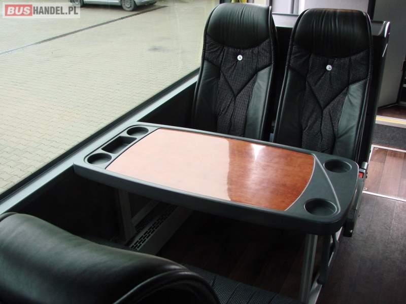 : WC, lodówka, caffebar, oświetlenie indywidualne, nawiewy dyszowe, ABS, ASR, tempomat, retarder, nawigacja, CD, podnóżki, stoliczki, mikrofon, klimatyzacja, radio, regulacja wysokości nadwozia, centralny zamek, podwójne szyby boczne, wspomaganie kierownicy, elektryczne lusterka, aluminiowe felgi, fotele odchylane i rozsuwane, DVD, ogrzewanie stacjonarne