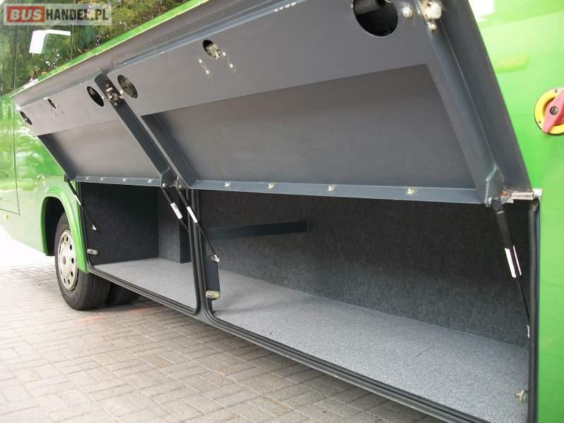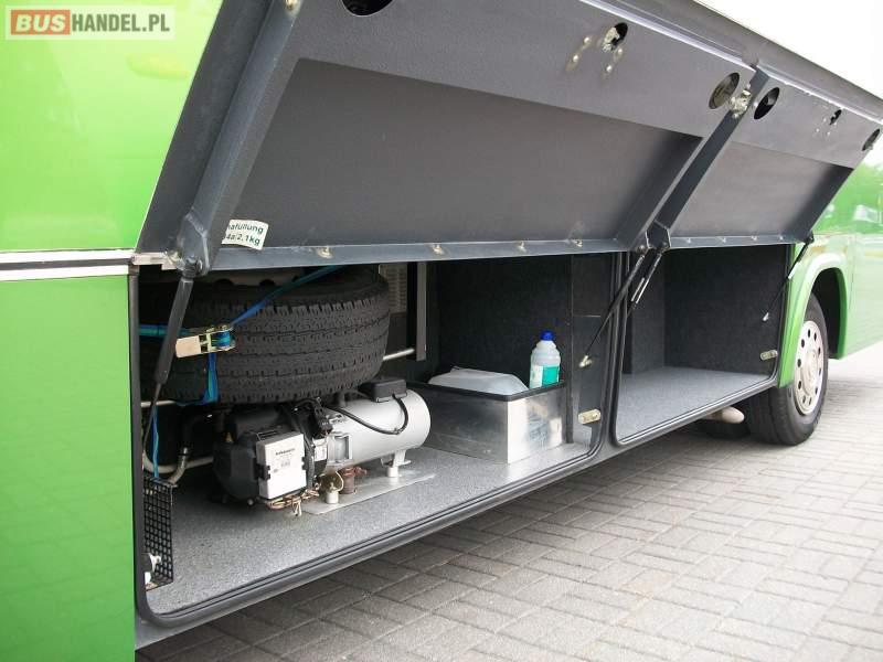 : lodówka, oświetlenie indywidualne, nawiewy dyszowe, siateczki, ABS, ASR, tempomat, retarder, CD, podnóżki, stoliczki, mikrofon, klimatyzacja, radio, regulacja wysokości nadwozia, podwójne szyby boczne, wspomaganie kierownicy, elektryczne lusterka, fotele odchylane i rozsuwane, DVD, ogrzewanie stacjonarne, hak holowniczy