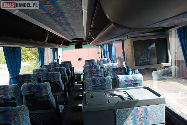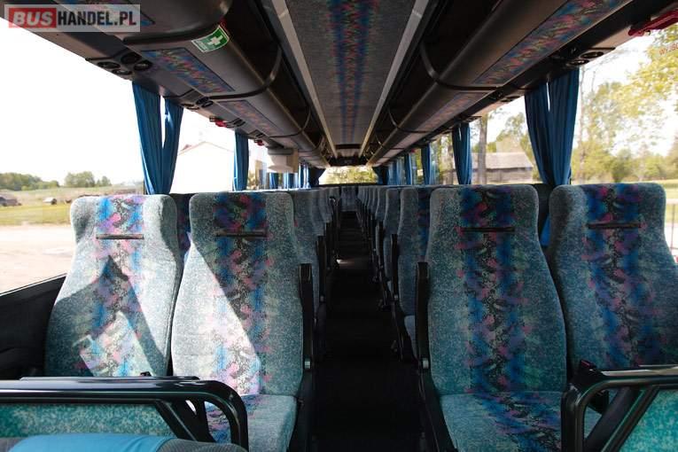 : WC, lodówka, caffebar, kabina sypialna, fotele odchylane, oświetlenie indywidualne, siateczki, ABS, tempomat, retarder, CD, podnóżki, stoliczki, mikrofon, klimatyzacja, radio, sejf, regulacja wysokości nadwozia, podwójne szyby boczne, wspomaganie kierownicy, fotele odchylane i rozsuwane, DVD, ogrzewanie stacjonarne