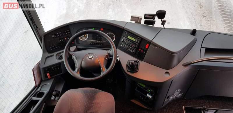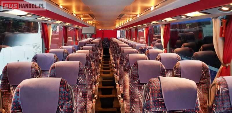 : WC, lodówka, caffebar, kabina sypialna, fotele odchylane, oświetlenie indywidualne, nawiewy dyszowe, siateczki, ABS, ASR, tempomat, retarder, CD, podnóżki, stoliczki, mikrofon, klimatyzacja, radio, wyświetlacz matrix, sejf, regulacja wysokości nadwozia, centralny zamek, podwójne szyby boczne, wspomaganie kierownicy, elektryczne lusterka, fotele odchylane i rozsuwane, DVD, ogrzewanie stacjonarne, hak holowniczy, ESP