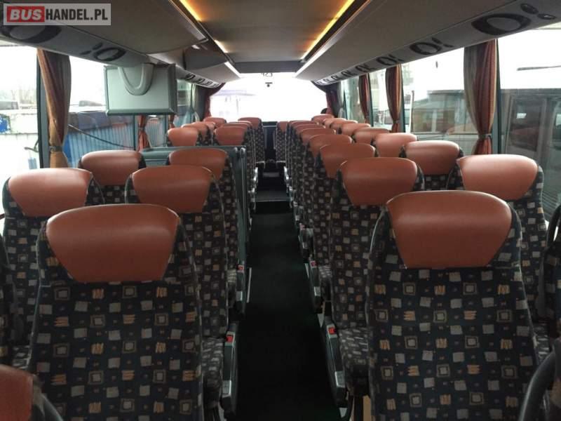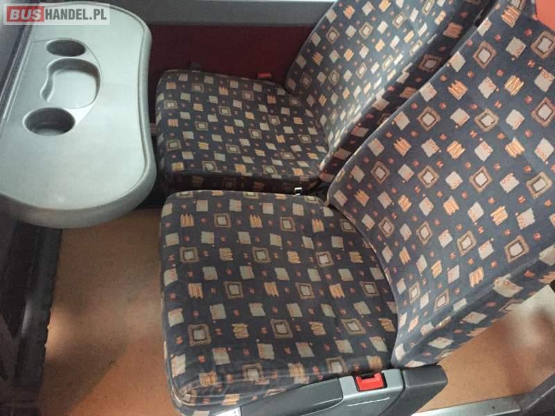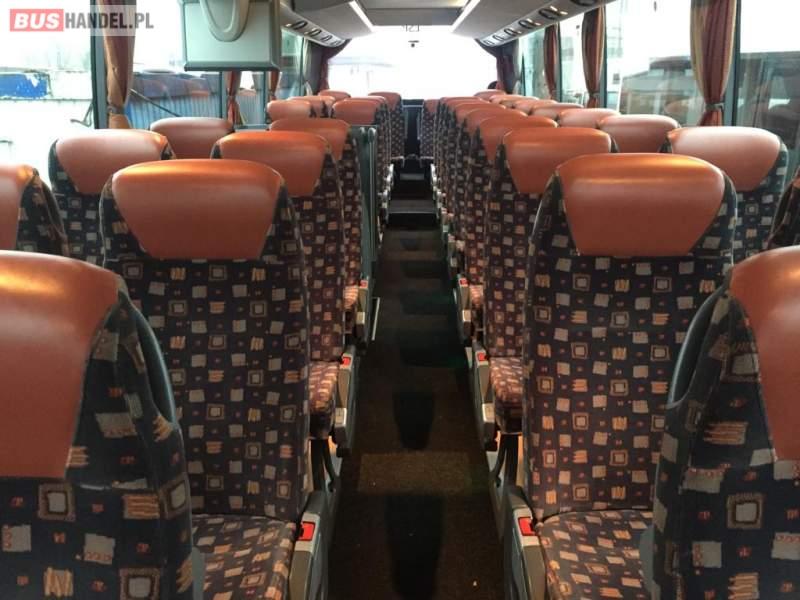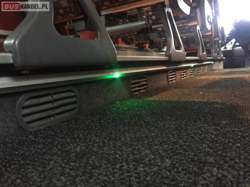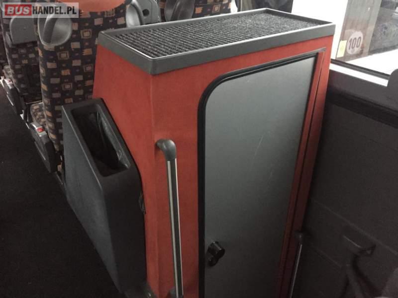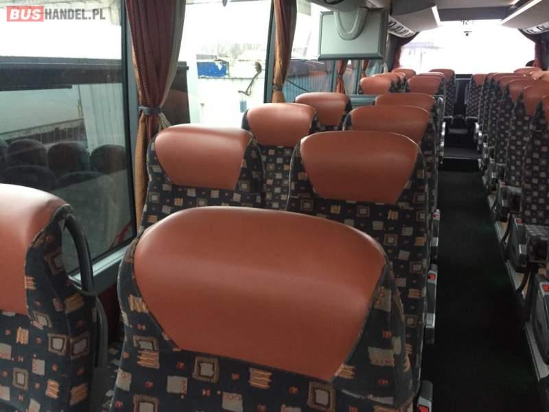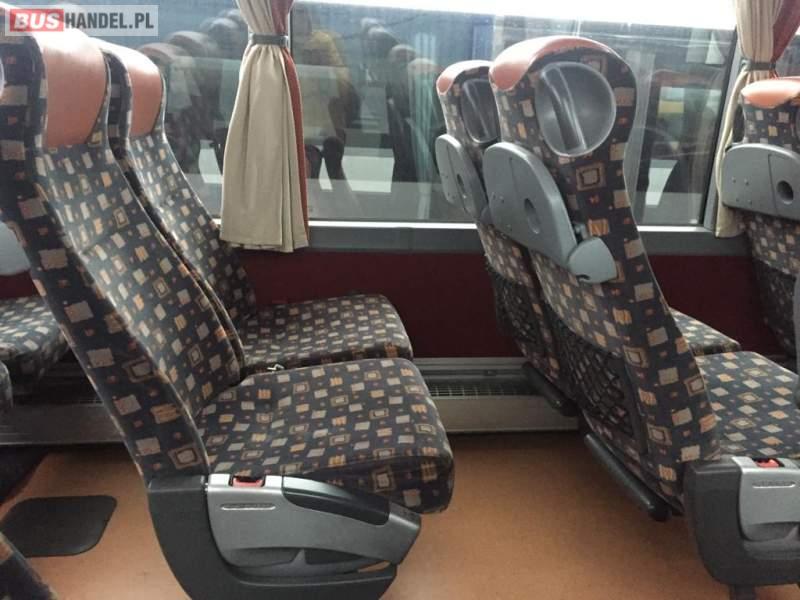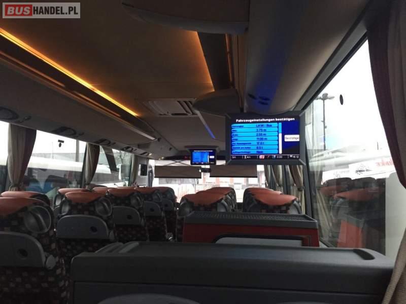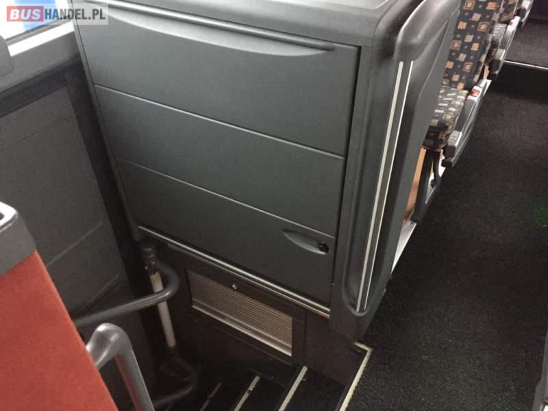 : video, WC, lodówka, caffebar, oświetlenie indywidualne, nawiewy dyszowe, siateczki, ABS, ASR, tempomat, retarder, telefon, nawigacja, CD, podnóżki, stoliczki, mikrofon, klimatyzacja, radio, wyświetlacz matrix, sejf, regulacja wysokości nadwozia, centralny zamek, podwójne szyby boczne, wspomaganie kierownicy, elektryczne lusterka, fotele odchylane i rozsuwane, DVD, ogrzewanie stacjonarne, ESP