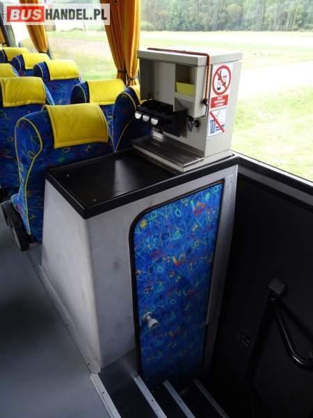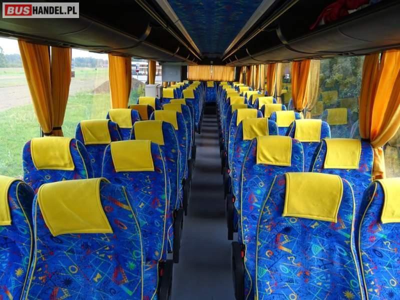 : WC, caffebar, fotele odchylane, oświetlenie indywidualne, nawiewy dyszowe, ABS, ASR, tempomat, retarder, podnóżki, mikrofon, klimatyzacja, radio, regulacja wysokości nadwozia, podwójne szyby boczne, wspomaganie kierownicy, elektryczne lusterka, fotele odchylane i rozsuwane, DVD, ogrzewanie stacjonarne, ESP