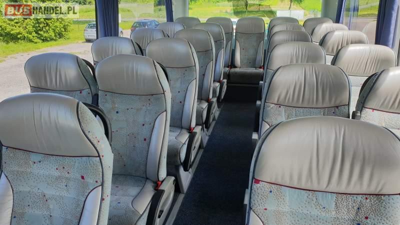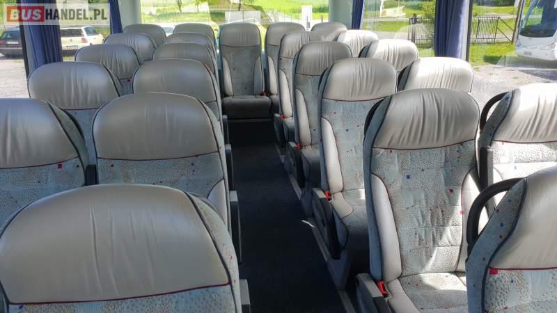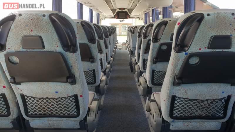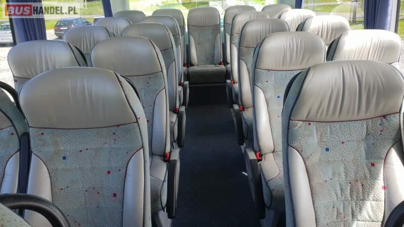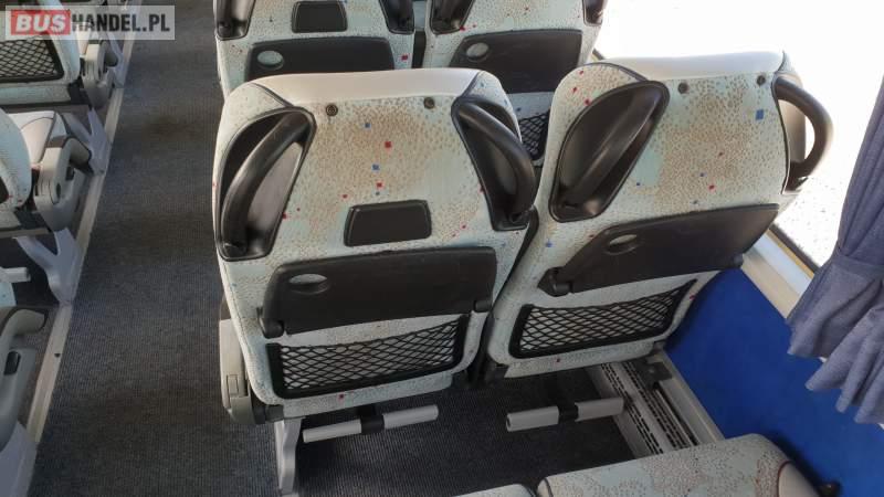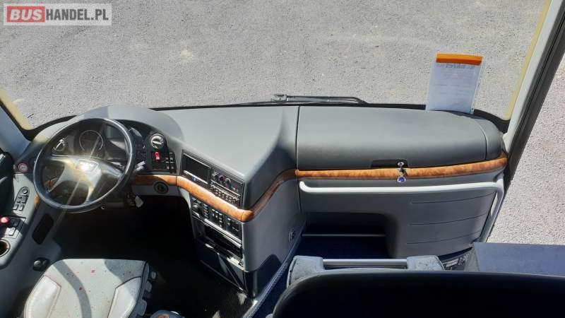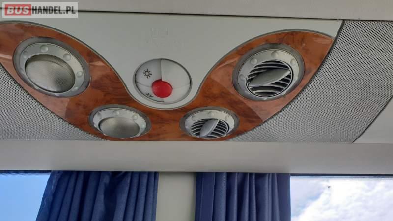 : video, lodówka, caffebar, kabina sypialna, oświetlenie indywidualne, nawiewy dyszowe, siateczki, ABS, ASR, tempomat, retarder, CD, podnóżki, stoliczki, mikrofon, klimatyzacja, radio, sejf, regulacja wysokości nadwozia, centralny zamek, podwójne szyby boczne, wspomaganie kierownicy, elektryczne lusterka, aluminiowe felgi, fotele odchylane i rozsuwane, DVD, ogrzewanie stacjonarne, ESP