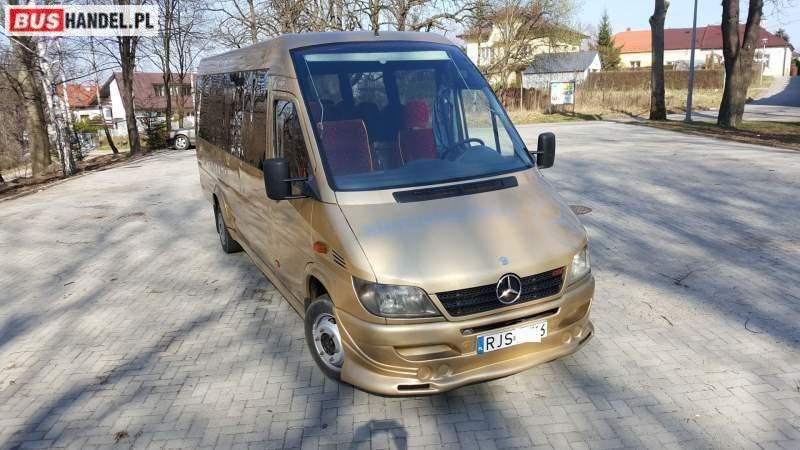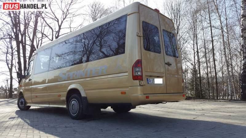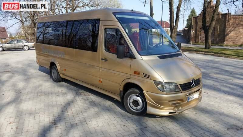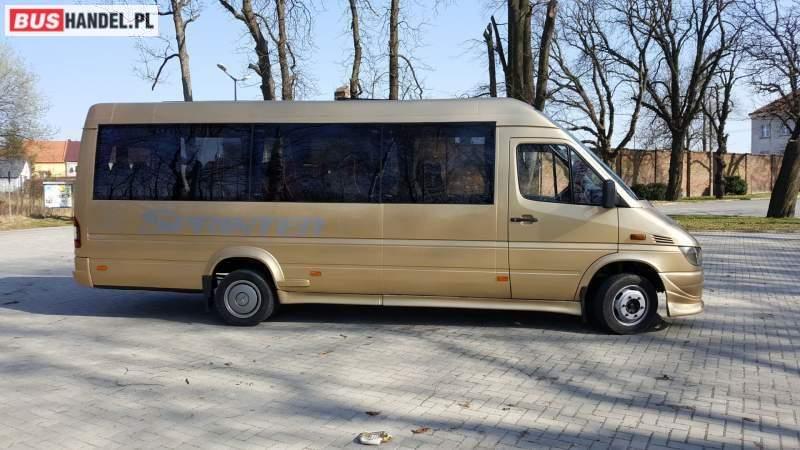 Sprzedam autobus - Mercedes Sprinter 416 CDI. Rok produkcji 2005. Silnik 2, 7 CDI. Przedłużony- wersja LONG. Stan techniczny jak i wizualny bardzo dobry. Autko zadbane, ładny złoty lakier. Bardzo wygodne, rozkładane fotele KIEL. Podwójna klimatyzacja, osobno przód- tył. Ogrzewanie- kaloryfery+ nagrzewnica. Webasto. Mikrofon. Radio CD Szyby Panorama. Szyberdach. Klimatyzacja przód- tył Cena 43000 + VAT od faktury. tel: 692-278-618 Sprzedający:
