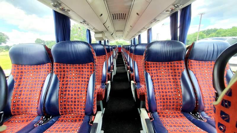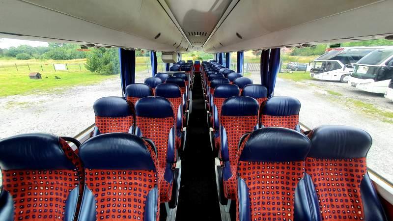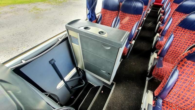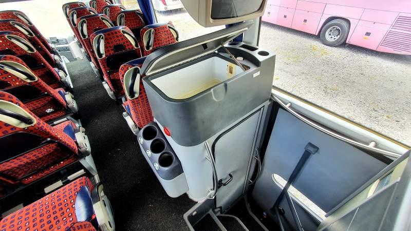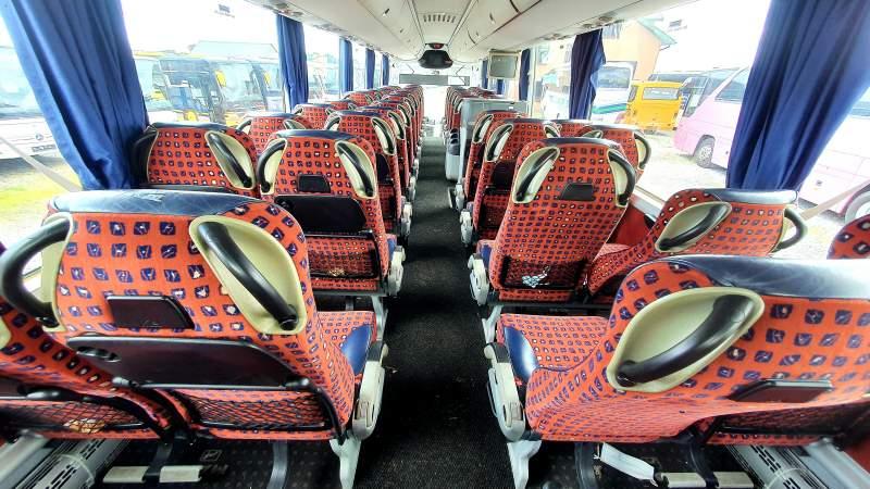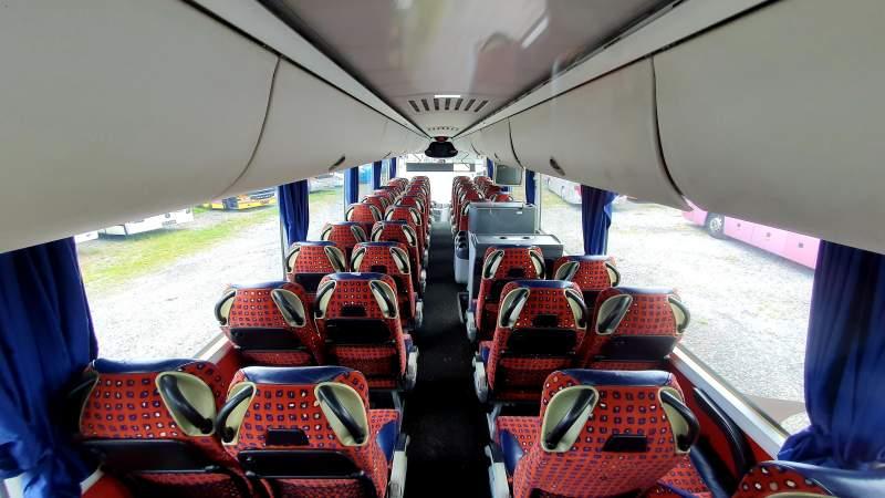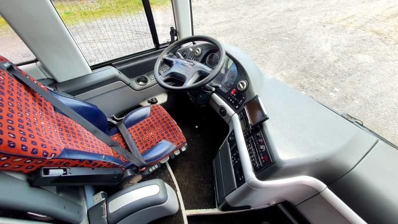: video, WC, lodówka, caffebar, kabina sypialna, oświetlenie indywidualne, siateczki, ABS, ASR, tempomat, retarder, CD, podnóżki, stoliczki, mikrofon, klimatyzacja, radio, regulacja wysokości nadwozia, centralny zamek, podwójne szyby boczne, wspomaganie kierownicy, elektryczne lusterka, aluminiowe felgi, fotele odchylane i rozsuwane, DVD, ogrzewanie stacjonarne, hak holowniczy