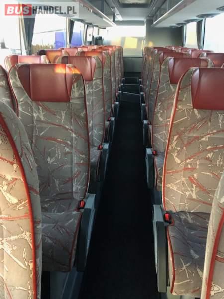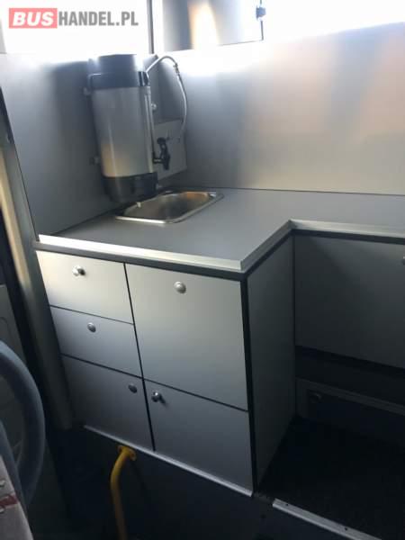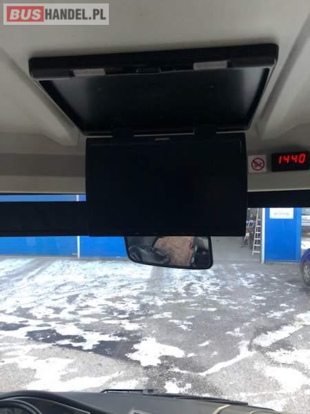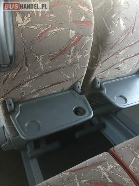 : video, WC, lodówka, caffebar, fotele odchylane, oświetlenie indywidualne, nawiewy dyszowe, ABS, ASR, tempomat, retarder, CD, mikrofon, klimatyzacja, radio, regulacja wysokości nadwozia, centralny zamek, podwójne szyby boczne, wspomaganie kierownicy, elektryczne lusterka, fotele odchylane i rozsuwane, DVD, hak holowniczy, ESP