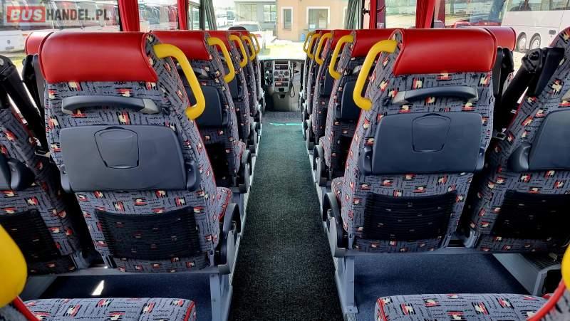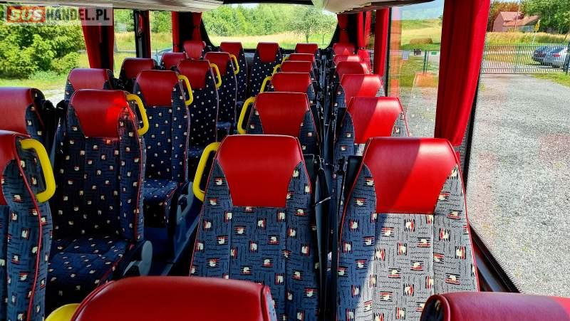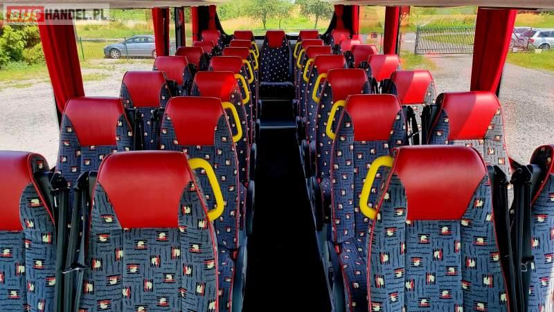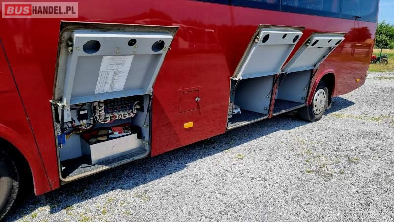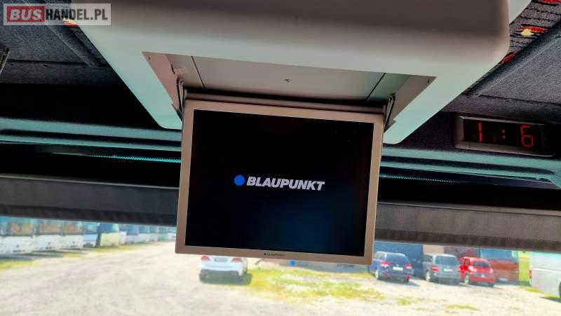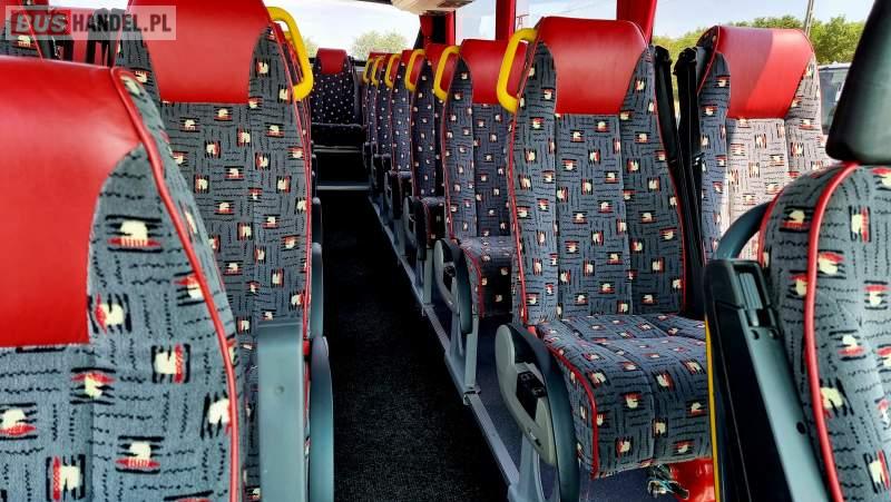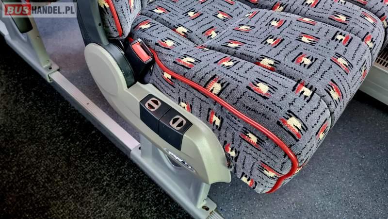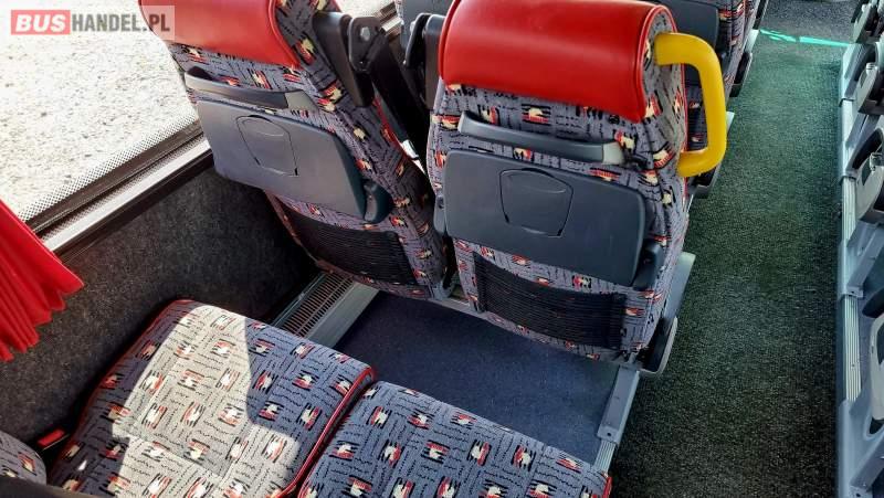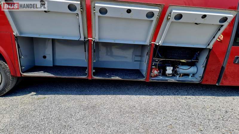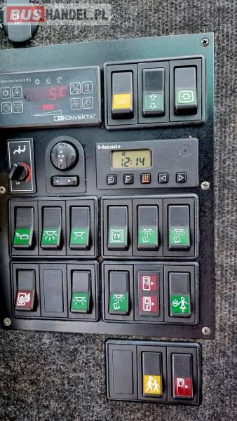 : video, lodówka, oświetlenie indywidualne, nawiewy dyszowe, siateczki, ABS, ASR, tempomat, retarder, CD, podnóżki, stoliczki, mikrofon, klimatyzacja, radio, regulacja wysokości nadwozia, centralny zamek, podwójne szyby boczne, wspomaganie kierownicy, elektryczne lusterka, fotele odchylane i rozsuwane, DVD, ogrzewanie stacjonarne, ESP
