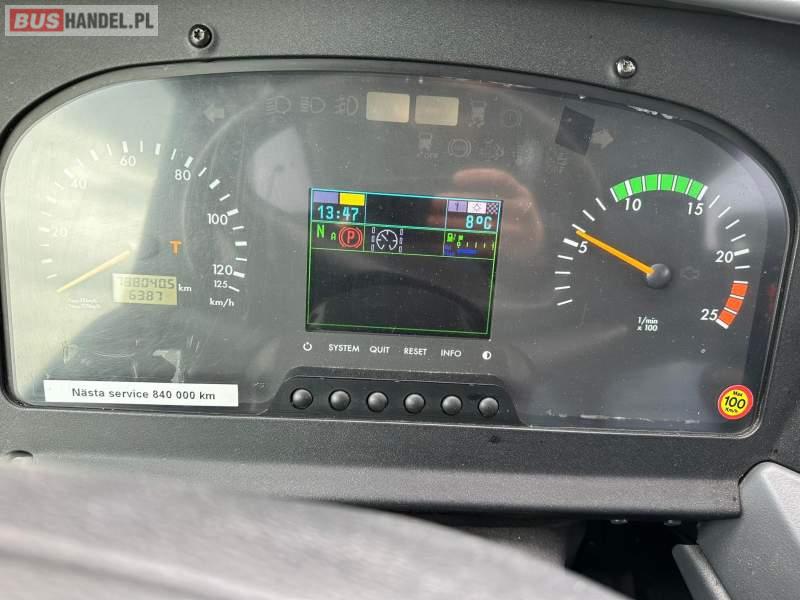 : WC, caffebar, oświetlenie indywidualne, nawiewy dyszowe, ABS, tempomat, retarder, CD, mikrofon, klimatyzacja, regulacja wysokości nadwozia, centralny zamek, podwójne szyby boczne, wspomaganie kierownicy, elektryczne lusterka, fotele odchylane i rozsuwane, DVD, ESP