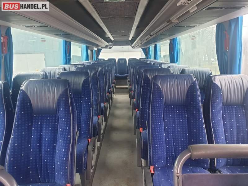 : lodówka, nawiewy dyszowe, siateczki, ABS, ASR, tempomat, retarder, podnóżki, stoliczki, mikrofon, klimatyzacja, radio, regulacja wysokości nadwozia, podwójne szyby boczne, wspomaganie kierownicy, elektryczne lusterka, fotele odchylane i rozsuwane, ogrzewanie stacjonarne